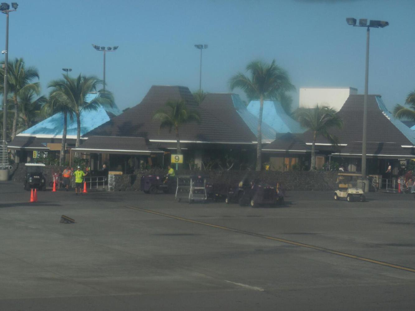 The Kona airport is swell. It is comprised of little huts, and is mostly open to the outside. There are no long concourses here, Just a casual stroll through a courtyard to the baggage pickup. Our stuff pops off immediately, and in good order.