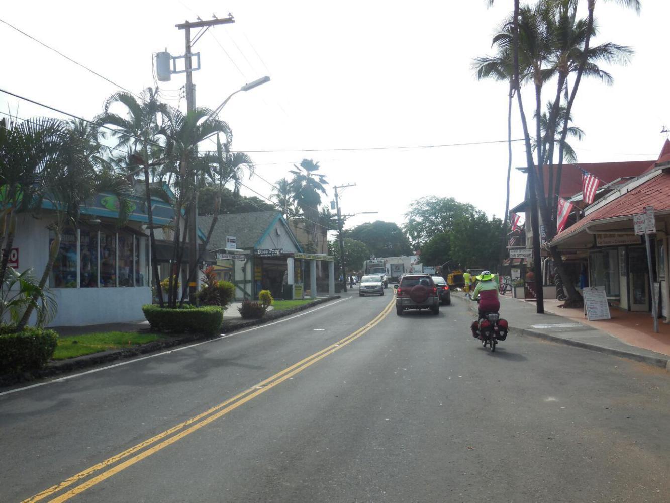 So with these things percolating in the background, we cautiously rolled our bikes through the lobby of the Kona Seaside. We were still in the lobby, when we met our first person of the day who was curious about our trip. It turned out to be an elderly (like us) man, originally from Weimar in Germany, but now from Vancouver. He was a very fit looking marathoner, and we had a good time talking about running, cycling, and where we each had been in Germany.