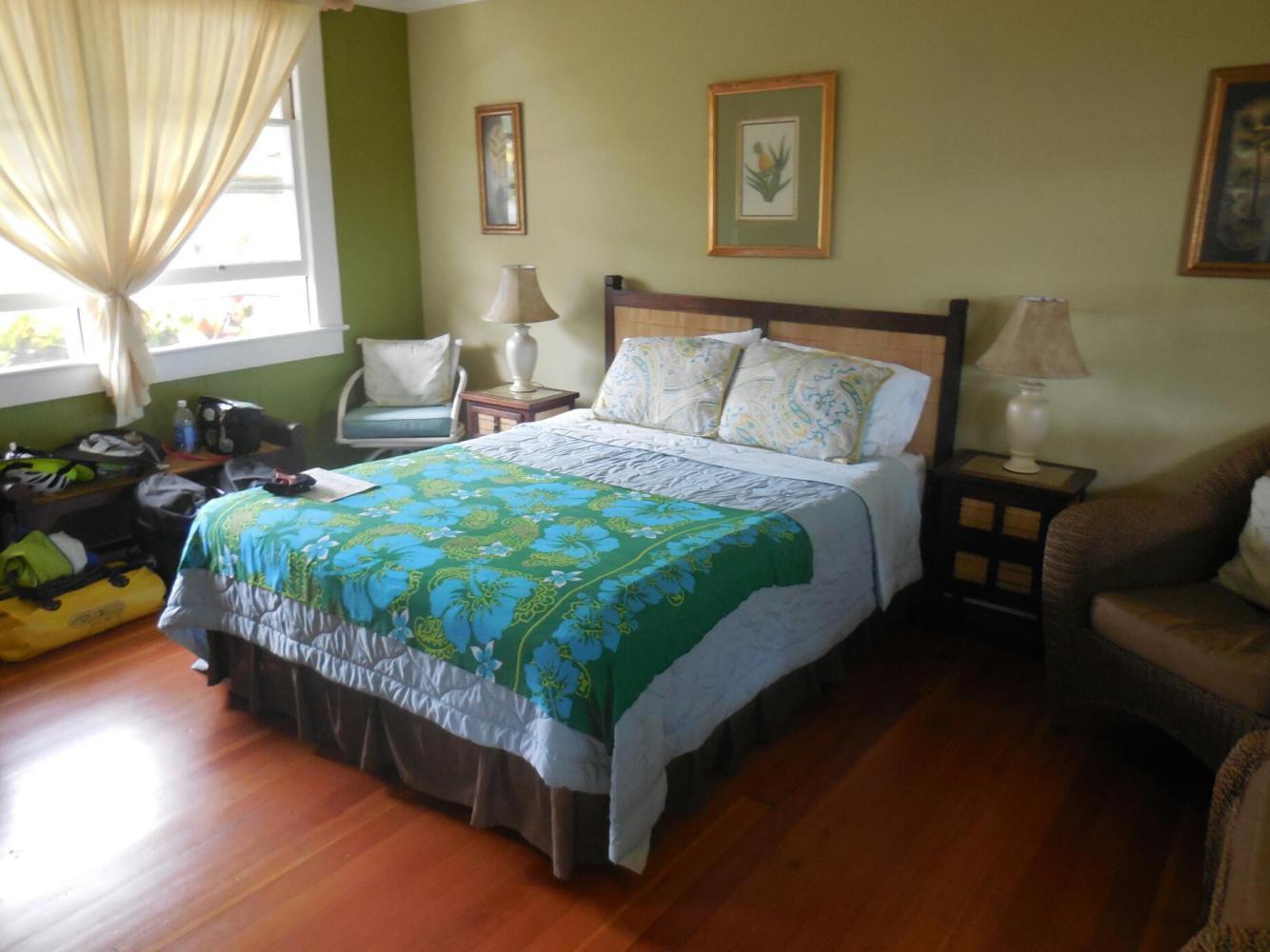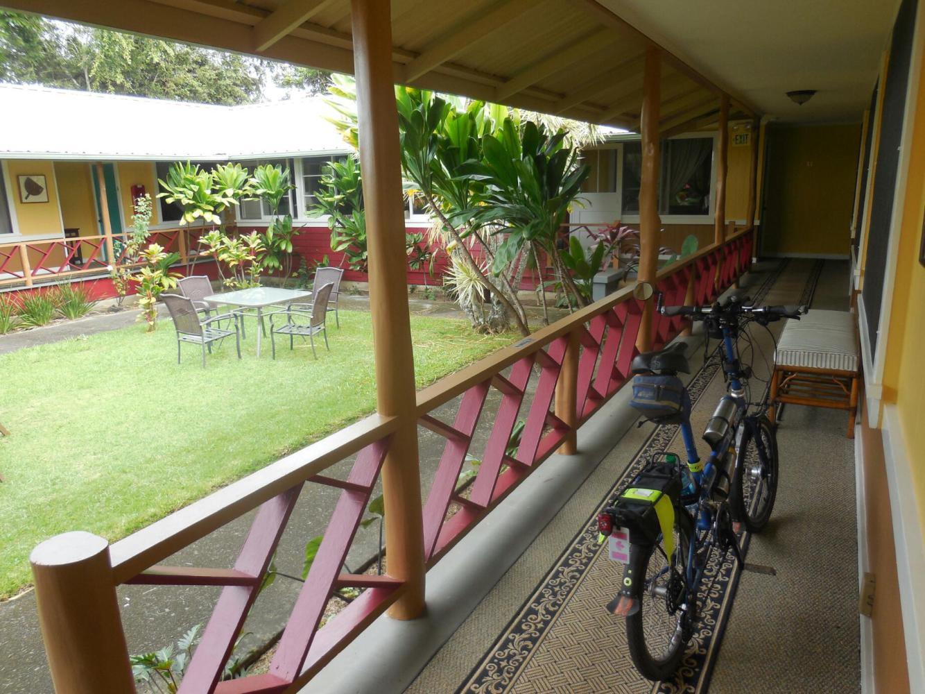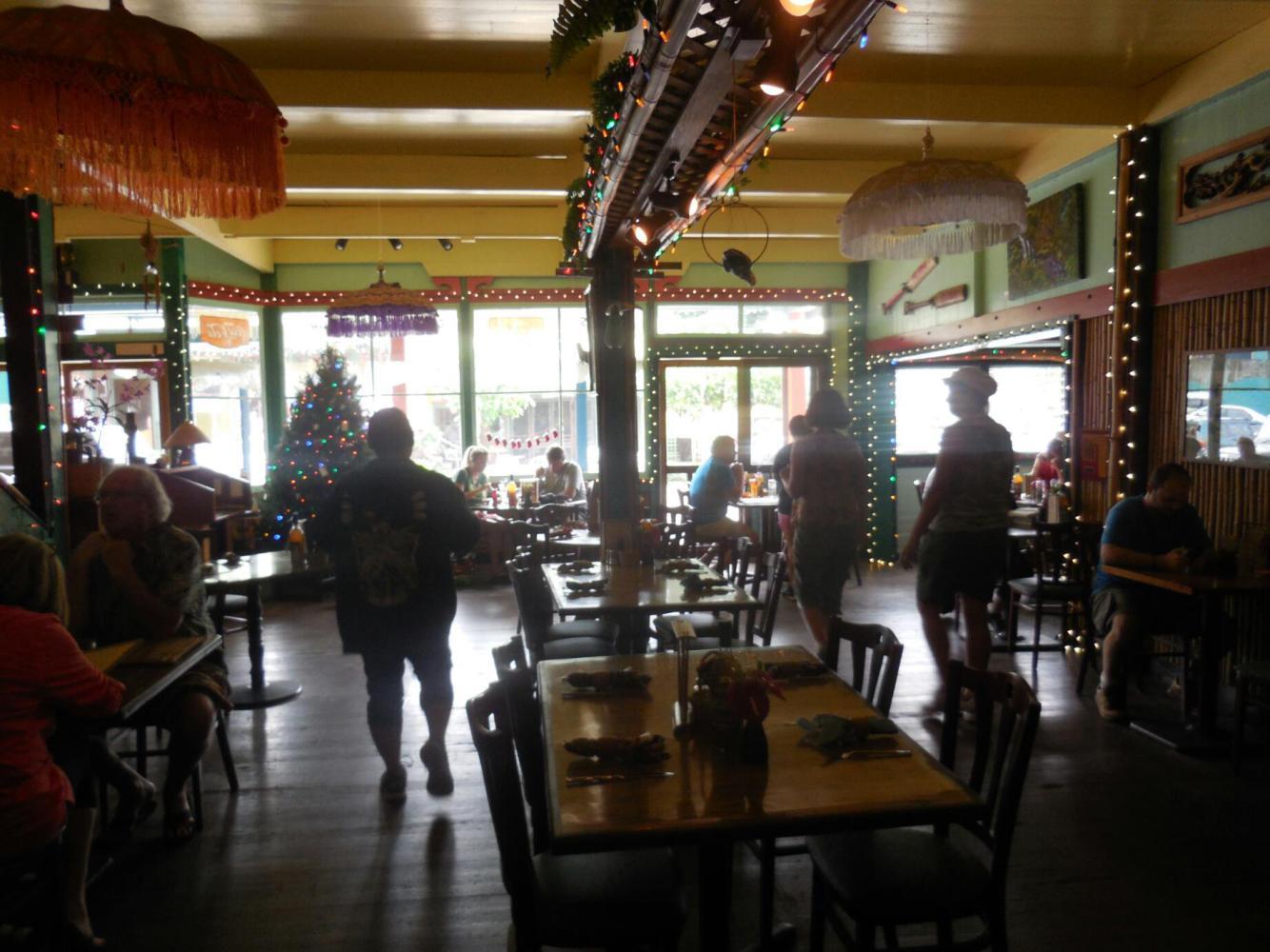 We were on the lookout for the place where we had booked two nights, from home - the Kohala Village Inn. We did not want to pass it and then have to climb back up to get to it. Fortunately, it is smack in the middle of town. We were very pleasantly surprised, because while it is not as elegant as the Jacaranda, it is very very pleasant. In fact, the Inn was our introduction to a style and an attitude that we think characterizes Hawi, and that makes it possibly our favourite place on the island. The style could be characterized as some combination of wood floors, trims, tables and furniture, with wicker and bamboo around as well, tropical plantings, and a pastel palette for painted surfaces. Things are not new, but neither are they run down. The attitude is one of friendliness and accommodation, with no hint of what are you doing on our island.