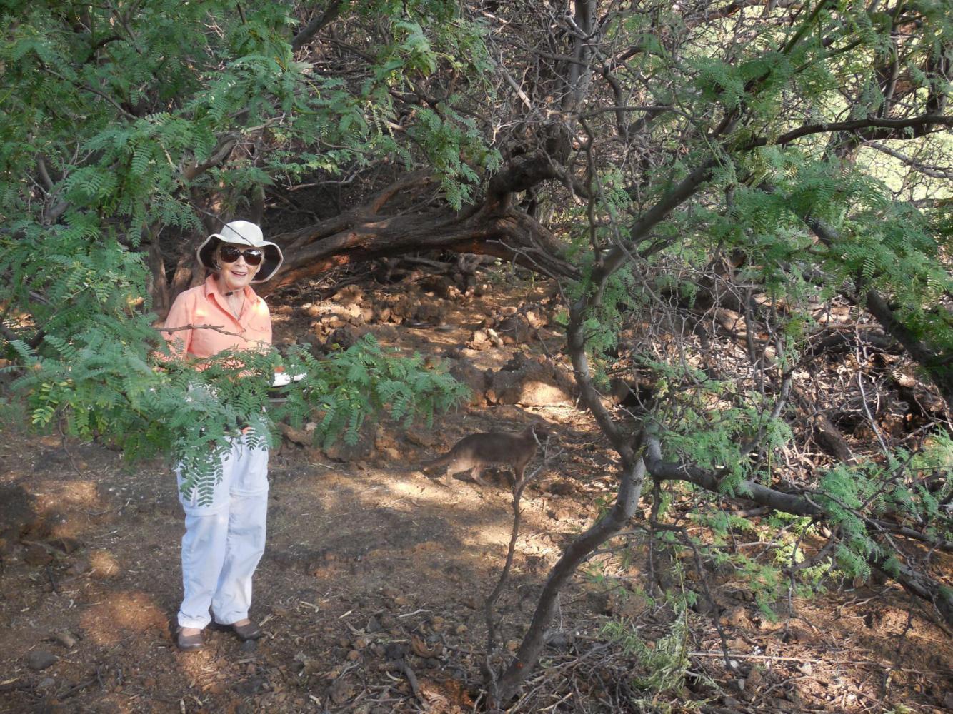 Simulation or not, when you get deep enough into the resort area it really is lovely. Our first stop was a parking lot that serves as a trail head for a visit to some petroglyphs. The parking lot itself, though, was where the excitement began. Here was a lady with a trunk full of paraphenalia, who was feeding a colony of feral cats. She was doing an excellent job, apparently, since each of the many cats looked great. She said they all had been spayed or neutered. The cats themselves were circulating freely amid a colony of mongooses. The mongooses, the lady said, had been introduced to eat rats in the cane fields. But rats are nocturnal and mongooses are not. oops. Avi and Violet, does it remind you of the old lady who swallowed a spider?