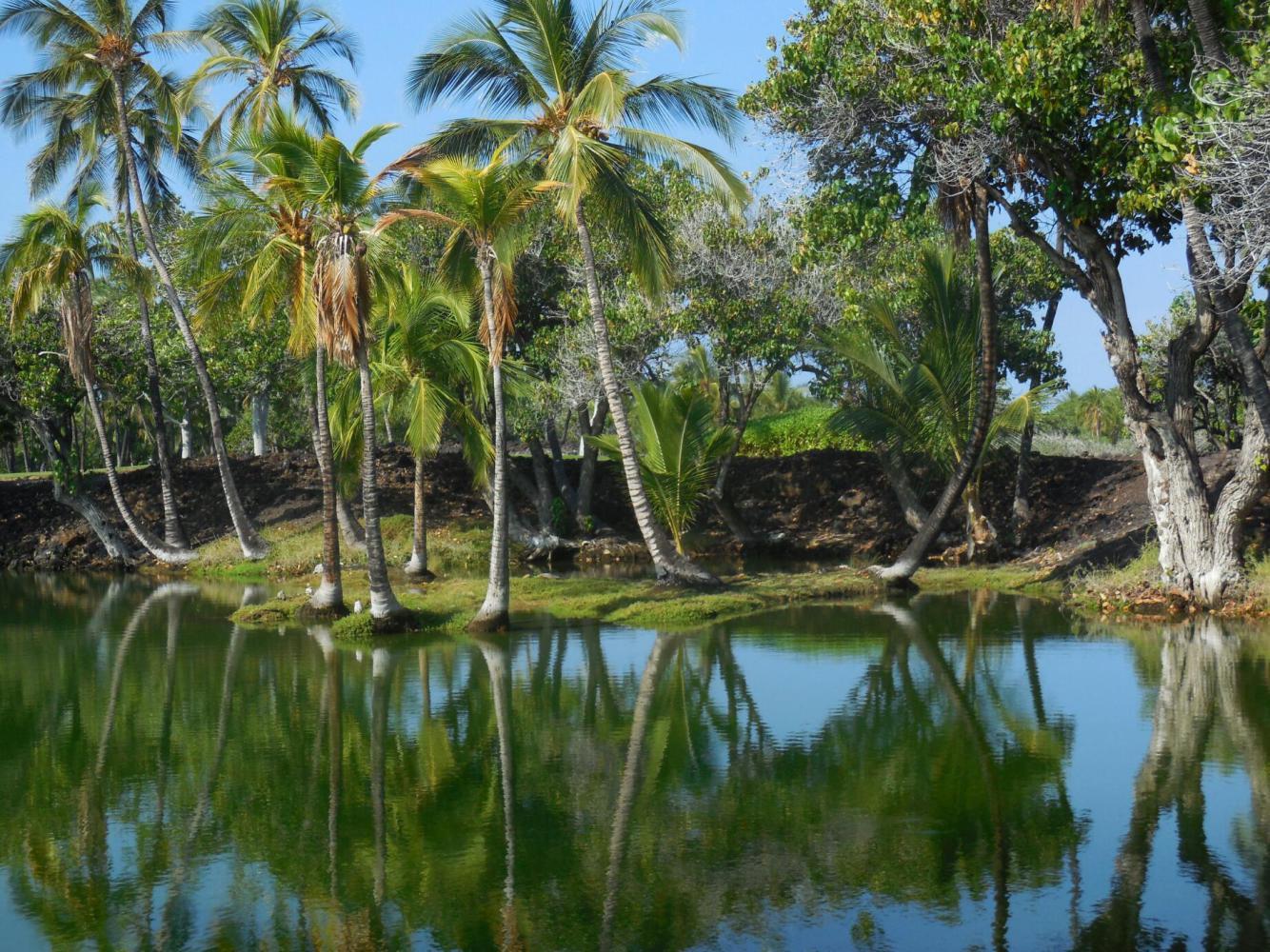 When we first read about fish ponds to be found in the area, the image was of the Koi filled pond at the Hilo Seaside. Not so. Here, the fish ponds are a quite large and varied system just beside the ocean. The ponds had been used by the Hawaiians for centuries to raise fish for food, such as mullet and milkfish. The management of the ponds has been kept unchanged, though it is doubtful that anyone is currently using the fish for food. The ponds themselves were incredibly beautiful, as any water is when combined with plantings. The whole environment was certainly excellent for strolling.