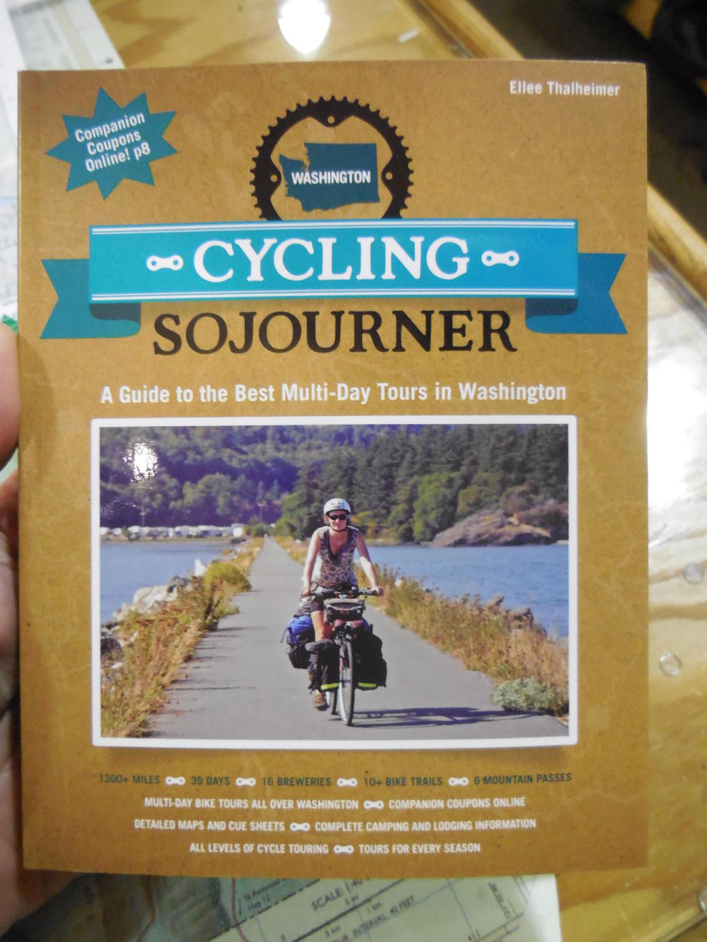 REI also has a semi-reasonable selection of cycling and outdoor books, though of course there is nothing like the wall of Bikeline books we found in the Globetrotter in Hamburg. One book, about cycling in Washington State did catch our eye. The reason was mostly the cover photo, which shows a "proper" loaded bike. Even if we eventually cut back on camping and cooking while cycling, we think this image of a touring bike will always be what we look for.