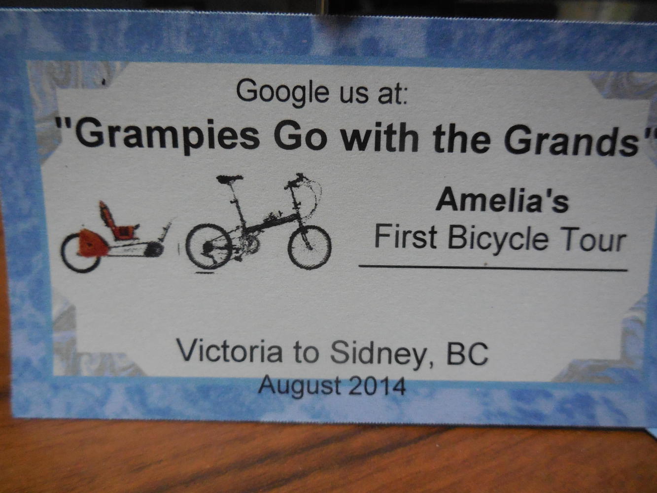 So now at 9:00 p.m. we feel fairly ready. In the morning we will load the van and head down to where Amelia is staying, with Darlene and John, her other grandparents. Sabrina says Amelia's wake-up time is 9:30. She will need her rest. It's not exactly all that easy to cycle from Aunt Karyn's to Sidney!