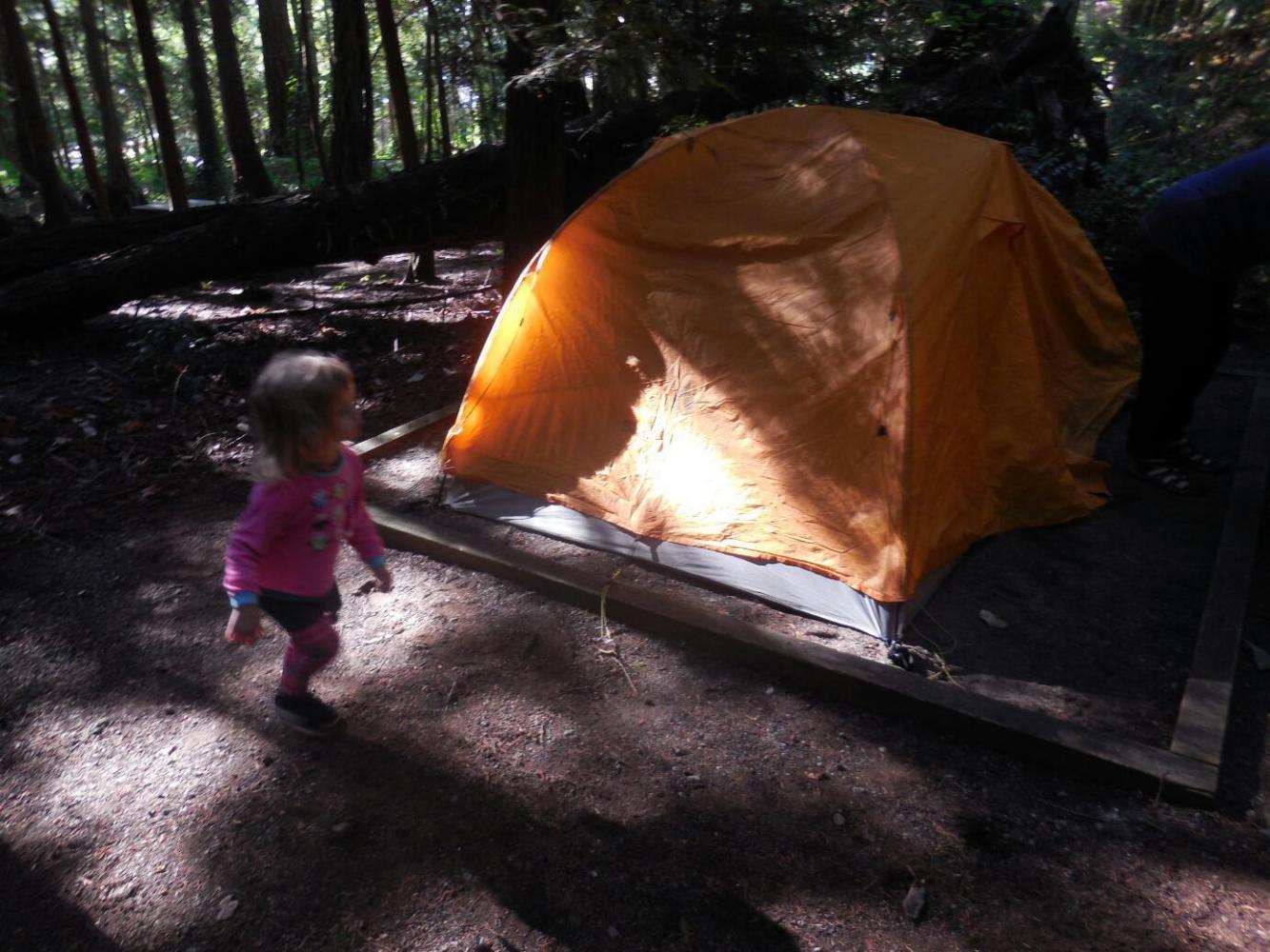 There was no rain in the night, so we could not really offer Amelia the experience of being secure in your tent. Still, it was a little bit chilly, so it was still satisfying to be in there. We woke up, as is normal, earlier than at home, and eager to start the day.