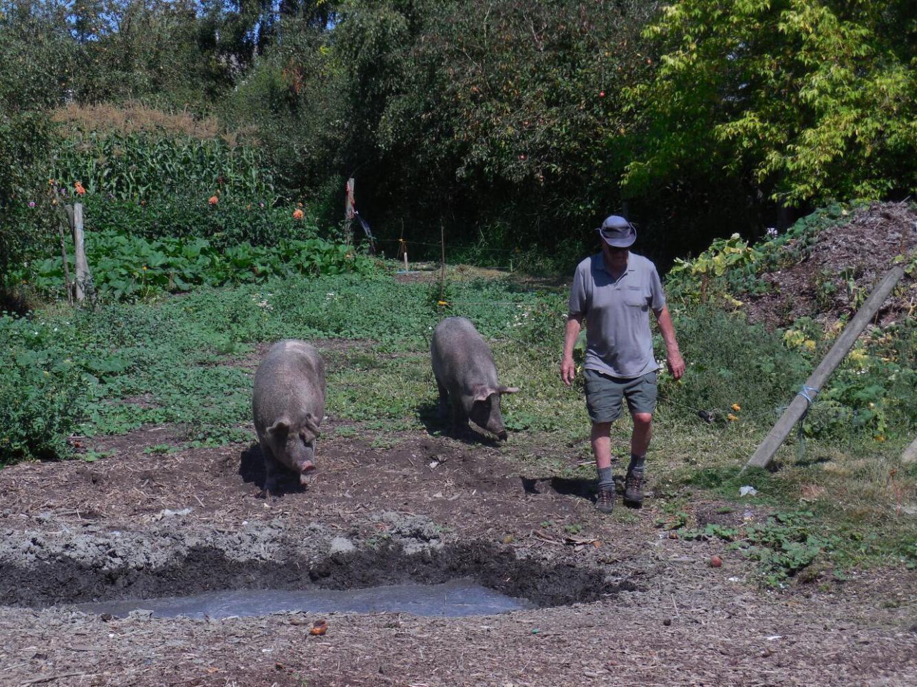 The trail continued to turn up new animals to look at, including some horses that had been far off yesterday, and most exciting the pigs. Amelia was most impressed with how dirty some of them were. I noted that the farmer looked almost the same. Where have these guys been playing?