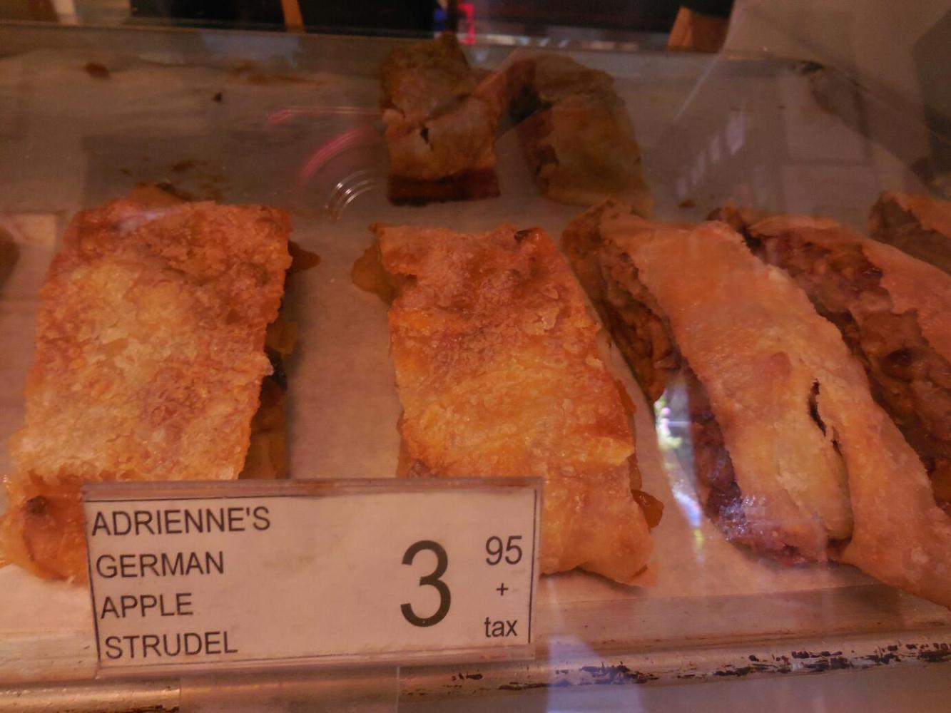 So I asked the salesperson "Who is Adrienne?" The answer was confusing. Adrienne was the owner, three owners ago. "Well then", I persisted, "who bakes these strudels?". I was told that they are made in-house from a family recipe of the present, German, owners. "So Adrienne never had anything to do with "Adrienne's strudel" - I am really confused!". It turned out to be simple - the name of the tea house is "Adrienne's"!
