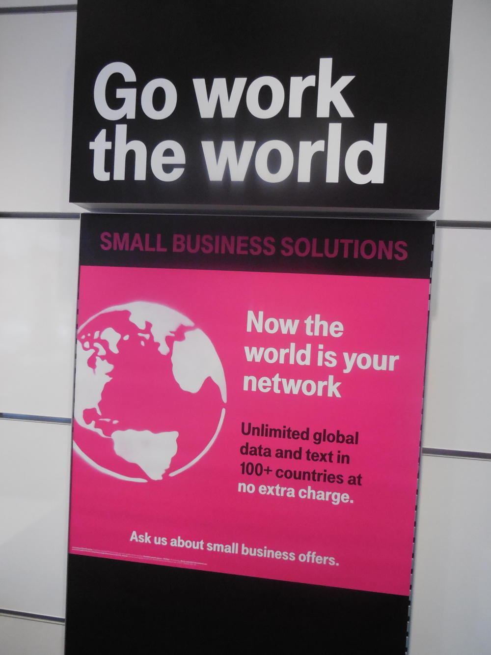 We thought we had the solution, when in a move that seemed too good to be true, T-Mobile announced that their data services would be available to account holders no matter which of 100 countries they wandered to. Maybe this was only announced to US customers, not sure. But in the T-Mobile store in Kirkland, Washington, this deal was emblazoned on a poster covering a full wall.