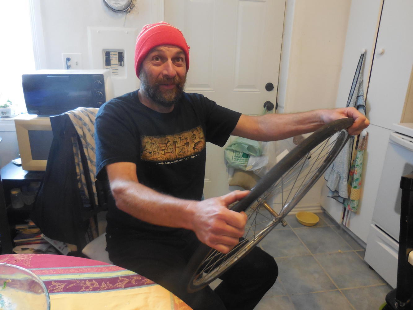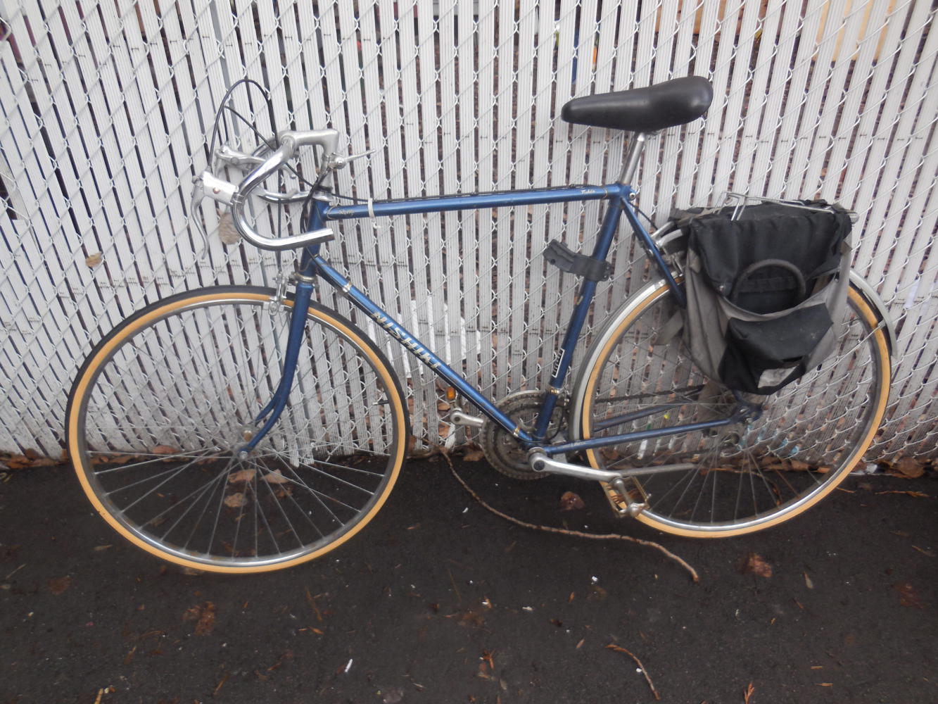 My big activity for today, my actual birthday, was the chance to refurbish the bike Josh had brought here to Montreal. It is a 1980's era Nishiki with non-indexed shifting and extension levers operating the brakes from dropped handlebars. With the wheels in my hands while replacing the tires and tubes, I judged the front wheel bearings to be OK, but the rear to need work. So I would need a cone wrench and bearing grease.
