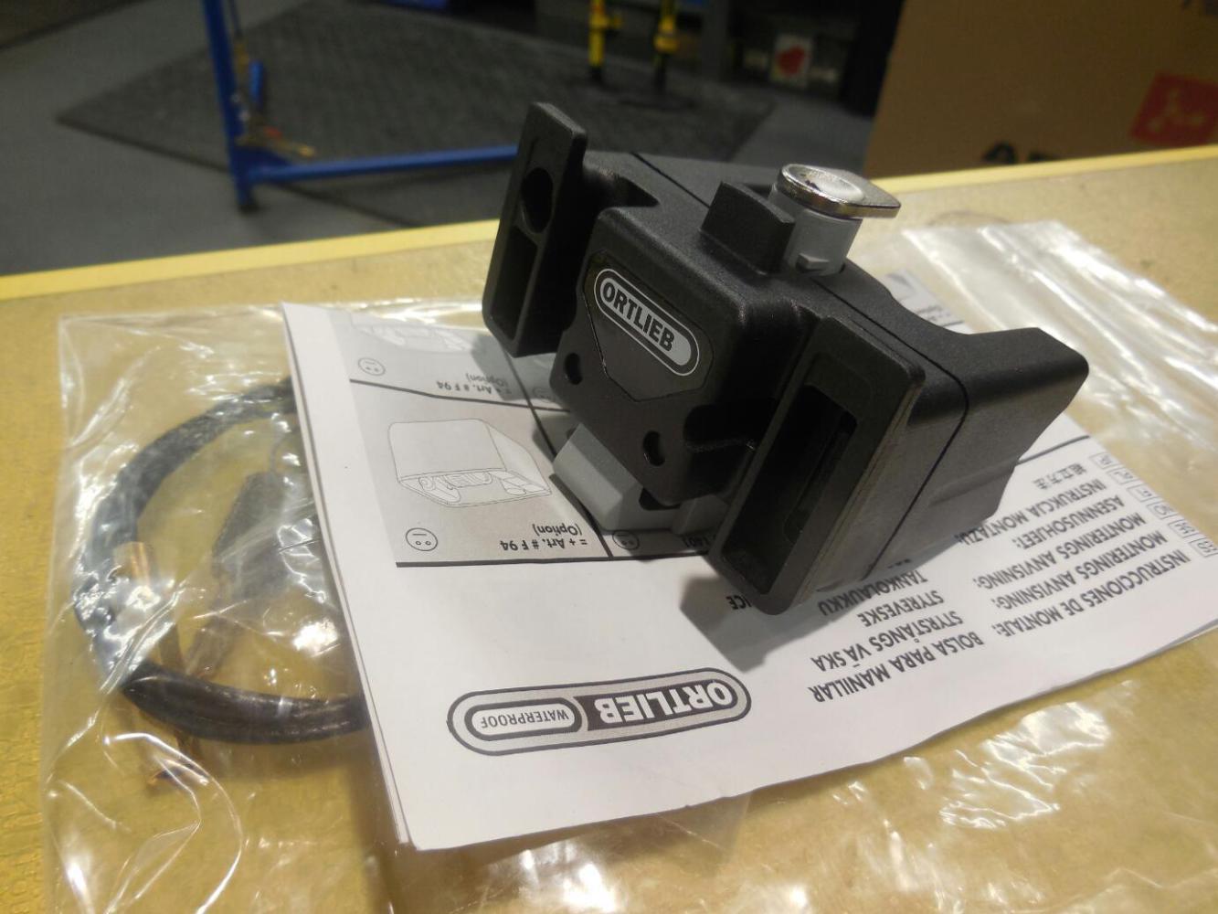 Over the years Ortlieb has varied its designs a bit, and in handlebar bags they have Ultimate 4, 5, and 6 series. Within these they have a variety of models, making a quite confusing picture.The bracket we got for Dodie's medium sized Ultimate 5 bag was called a mounting kit for Ultimate 2-6, but it looked unlike the one Westjet broke for us.
