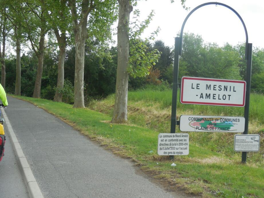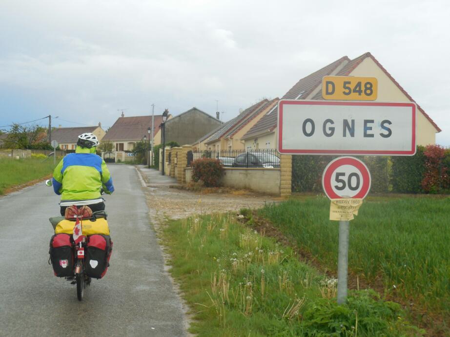 Now our objective was to find a town large enough that it might have a gite or a small hotel. Our Canadian flags had already drawn some attention during the day - friendly honks - but now a car stopped to ask if we were from Quebec. They were impressed to find we were not, but still spoke French. Anyway they suggested Nanteuil as a likely spot for a gite. Nice try, but no. However someone we spoke to there said there was a hotel in Crepy about 15 km away. We headed that way. Half way, at Orrnoy-Villers (where do they get these names?) someone suggested we go to Auger St Vincent. Crepy, they said, was really far!