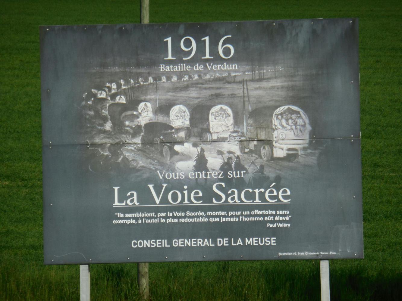 "La Voie Sacree - which came to be called the 'sacred road' and was simply called 'La Route' at the time - comprised the main road supply artery used by the French Army and which ran from Bar-le-Duc to Verdun.