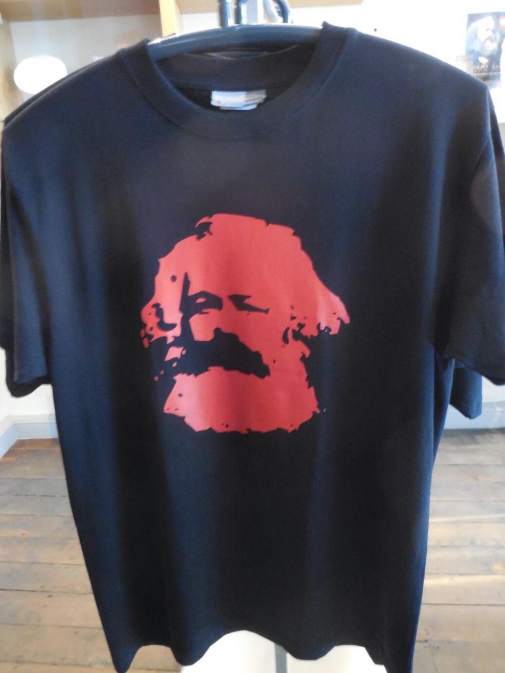 With all museums our perennial problem is whether to leave the bikes alone outside. In this case, they were willing to stash the bikes in the basement, but we would have to take off all the bags and store them behind the counter. In the end we decided that this was too much work. We did have fun, though, looking at the items offered for sale at the front. Poor Karl Marx, even he can not escape being the subject of a gift shop, where you can buy a tee shirt, or a postcard with his image and the caption "Doubt Everything". We would have bought some of the books that were there, but even with our willingness to make periodic mailings home, they were too heavy.
