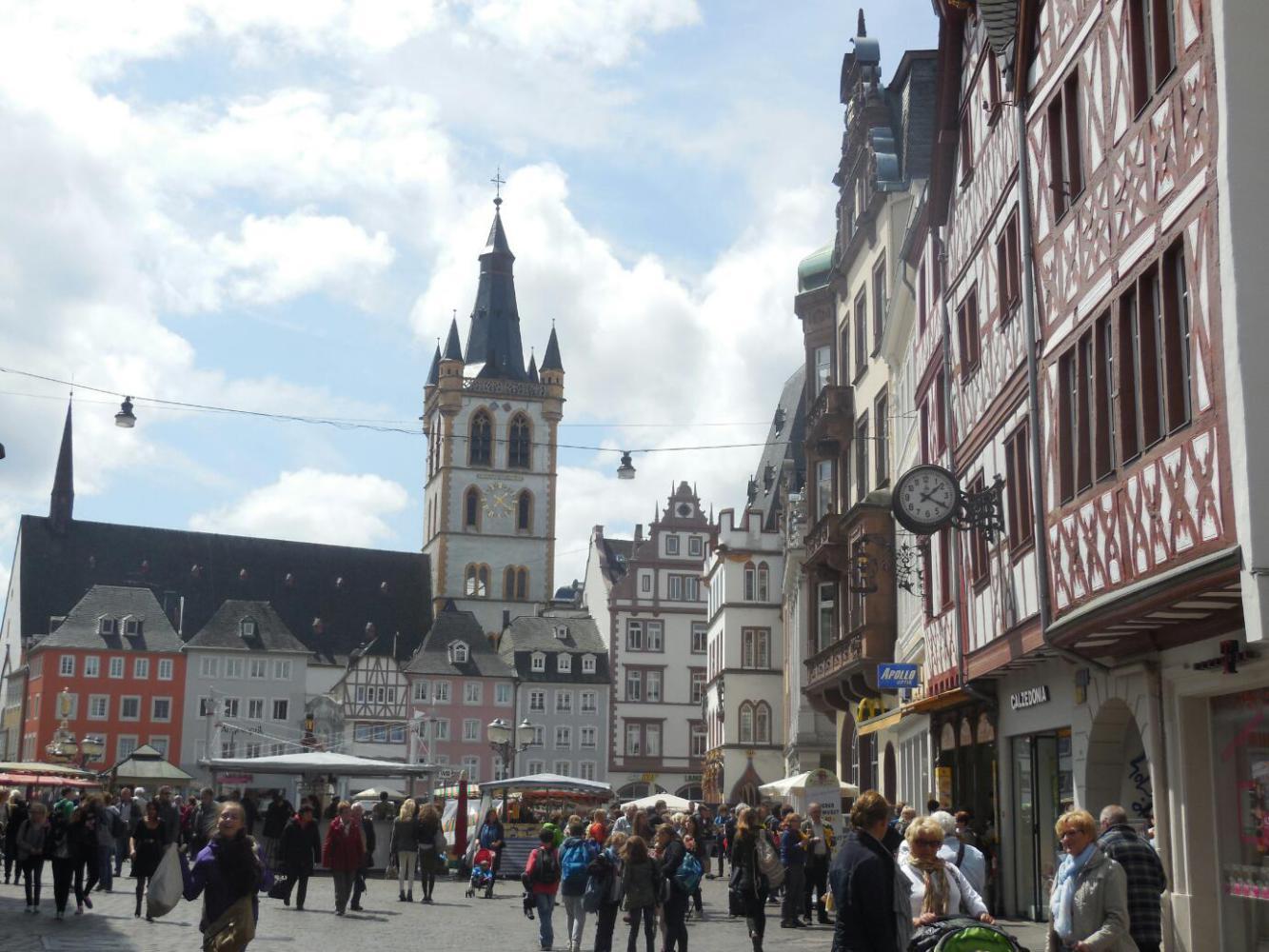 We crossed into the main part of Trier on what they call the Roman Bridge. I don't expect this bridge was actually 2000 years old, but it is likely that there has been a bridge in that spot for that long. The Roman legacy is in any event very prominent in this area. We would soon come to the Porta Nigra, a large rather black ancient city gate at the other end of the city.