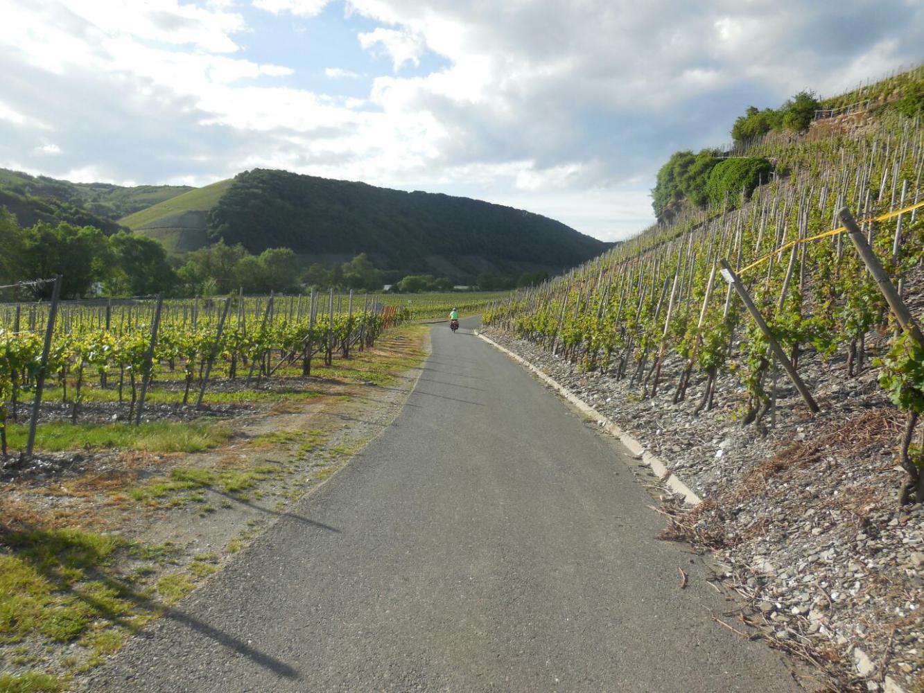 We soon were on our way again, the path usually following the river. The steep banks with vines image fell away a bit, and we did run in to some "ordinary" looking areas coming up to Trier.
