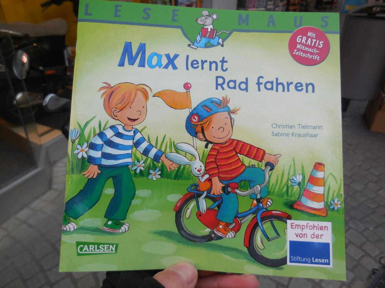 One other thing we bought today was two children's books. While yes, these will be for some children in the end, they are really for us. The background is that we often hear parents speaking to small children here, or better, grandparents. They always speak so softly, slowly, and clearly that we think if we could have one to speak to us that way, we, like the kids, would quickly learn. We also noted that watching Dora the Explorer on German TV raised our understanding noticeably. So we extrapolated all this to the idea that we could teach ourselves, from children's books.We went out and bought two, on subjects that we find interesting: bike riding and going to kindergarten. The only thing, these are geared for 5-8 year olds. That is way too advanced for us. We need 2-3 year old level! Maybe the advanced texts will not be a waste though - if we can get Sandra to read them to us at bedtime!