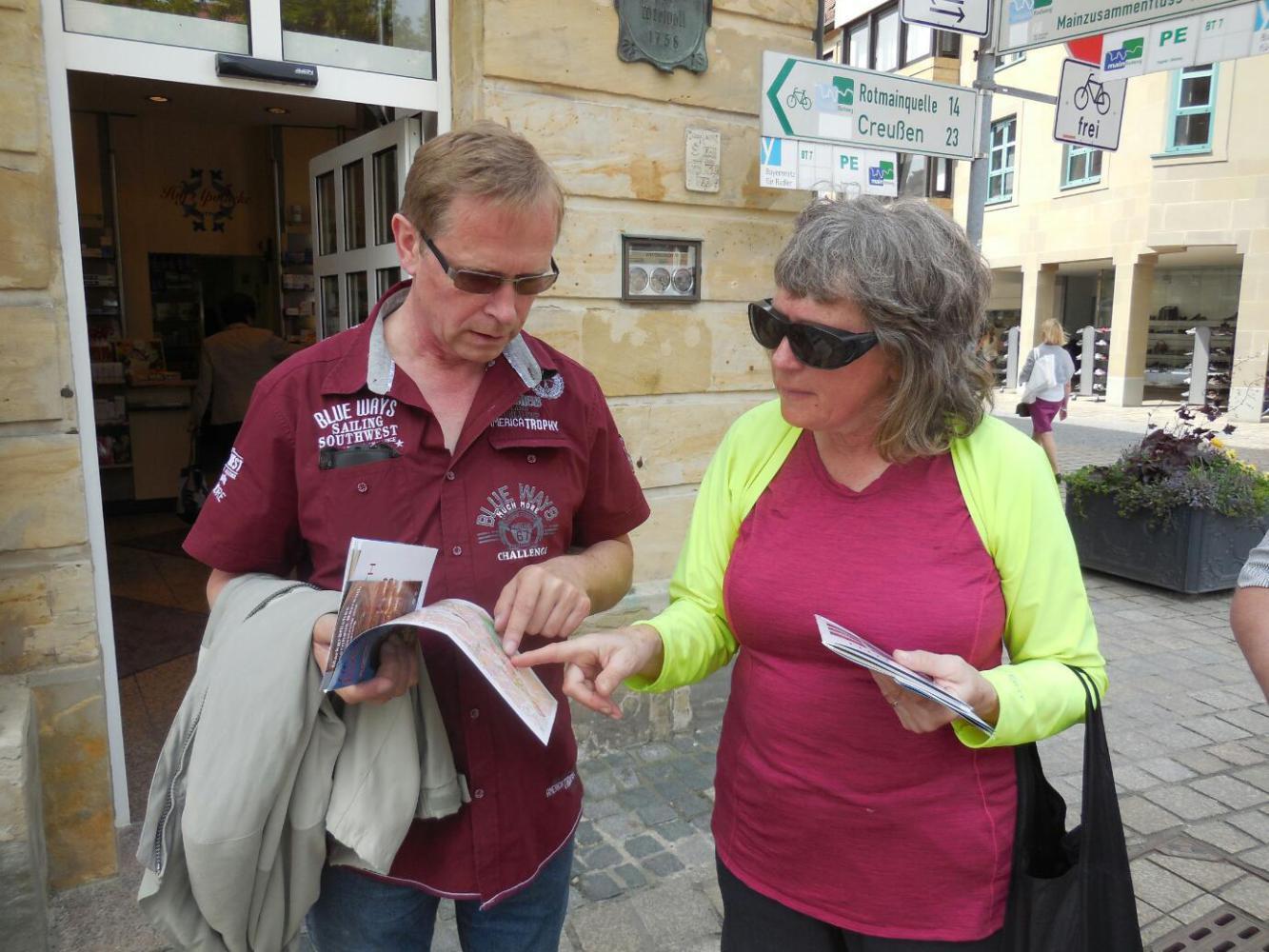 So the day did not shake out as one spent marvelling at ancient architecture and cityscape. However, it was still one of the best days of the tour. The reason lay with our friends here. Jurgen and Birgit and Joe and Karla drove down from Leipzig just to meet us here. These are the parents of Marius and Christian, two young men who came to us as visitors and who have now established themselves in Canada, and in our hearts. The four parents are fine, fine, people - and now, good friends. Though Christian says we knew this, we were surprised to find that Christian (and Melissa) had come to Europe in early May and have been touring and camping since then all over, including Ireland. But today, they came to us (and, oh sure, the parents too). So here we all were, able to stroll down the pleasant streets, and to sit for a long time in a nice restaurant.