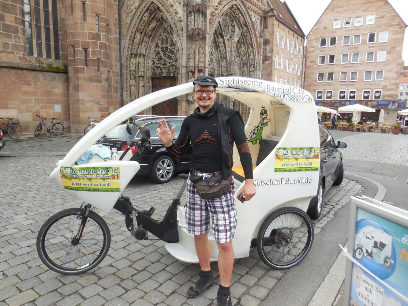One of those particularly tickled to see us here was Eric, the driver of a sightseeing rickshaw type bike. He had someone takes his photo with us, and then went around to some of the market vendors near his bike stand, explaining where where we were from and showing his photo. Most interesting, Eric was born in Czech but raised here. Still, he had an intriguing eastern accent. In that accent, he gave us a potted history of the town, and the reason that Hitler had been so fond of it.