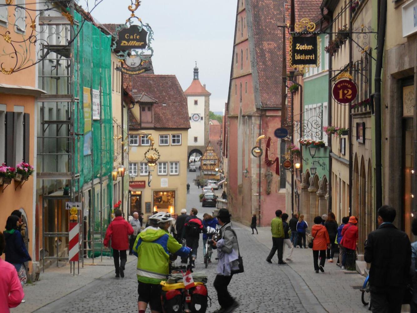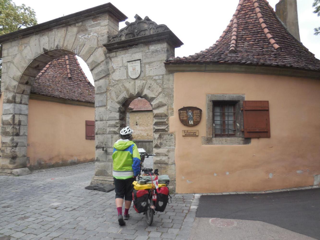 About half way to Rothenburg we stopped at an Edeka supermarket to pick up a few things to supplement what we had garnered at breakfast. This is where we met three Aussies, following the Pan Europa, from Paris to Prague. We had passed hundreds, thousands, of cyclists in the past weeks, but few if any would stop. 99 percent were credit card tourists out for a couple of weeks, and would really not have much to share as far as adventure goes. There were a few clearly long distance serious travellers, but they generally had their heads down and would not stop either. So it was great to be able to chat with the Aussies. One thing they told us about was where they had stayed in Rothenburg. In fact, they were able to produce the address and a postcard showing the area where the guesthouse is located. This turned out to be a lifesaver, because as it happened, that guesthouse was one of the only ones with a vacancy in the entire town!
