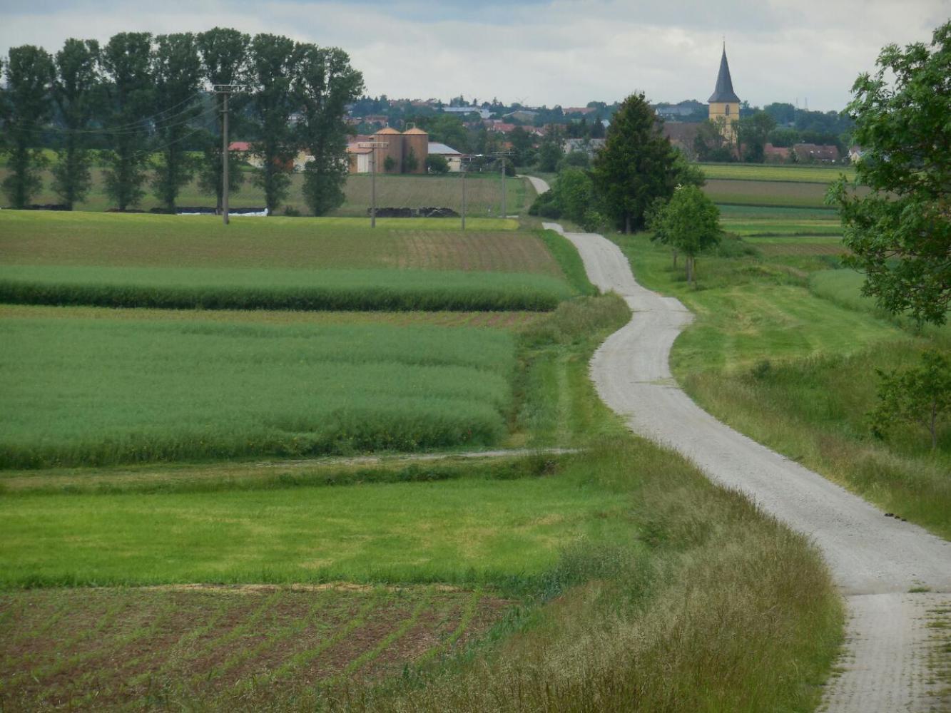 We left town by a south gate, remarking that (as Rick Steves has dubiously claimed for Nurnberg) when you are inside the walls, the city and the world outside might as well not exist. Actually, despite a shell station right outside, the modern town was quite pleasant as well, and it evolved out to rolling green countryside.