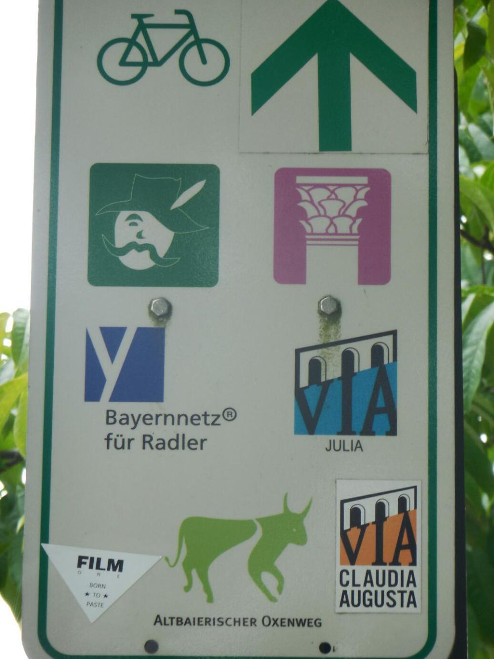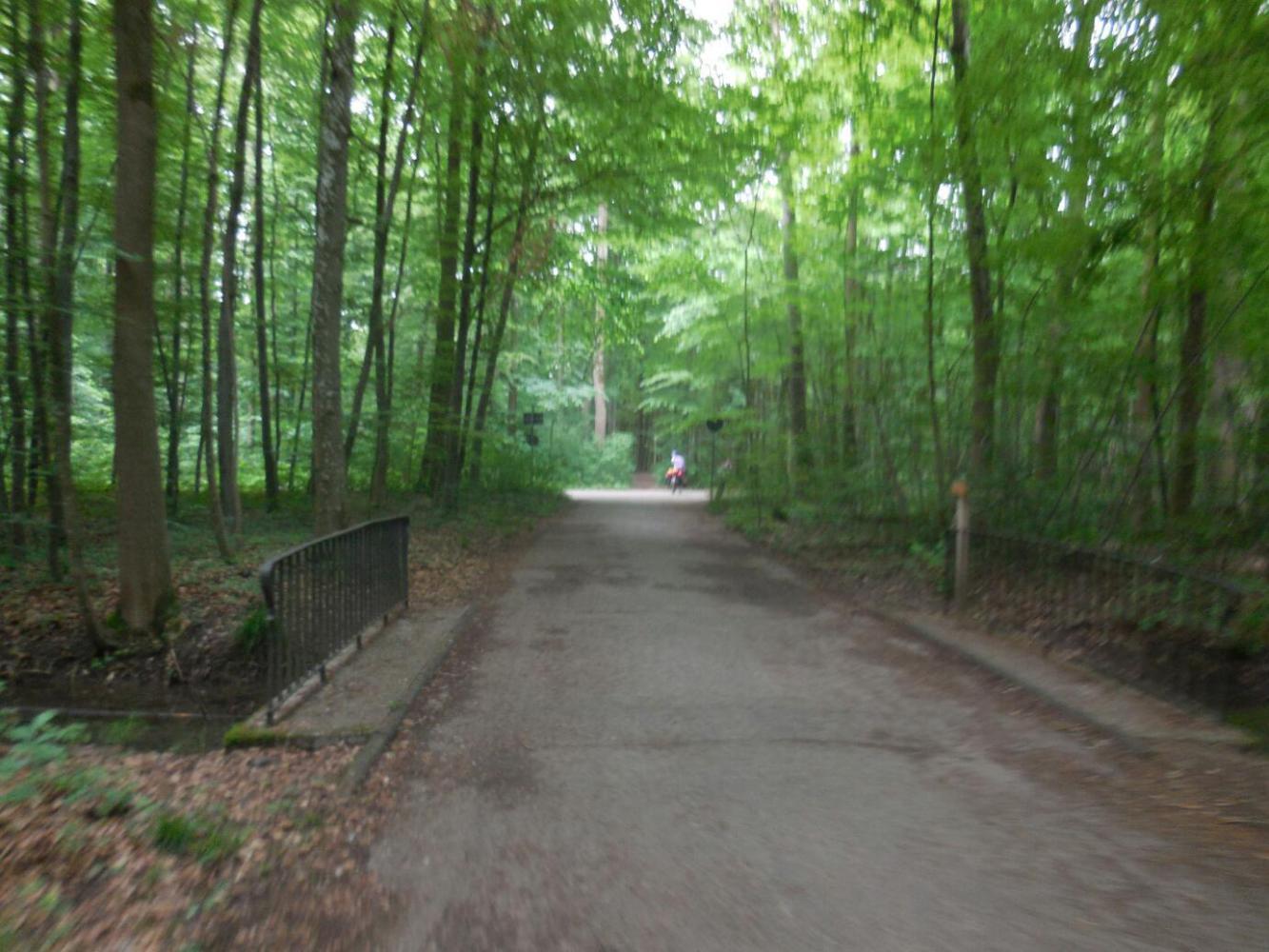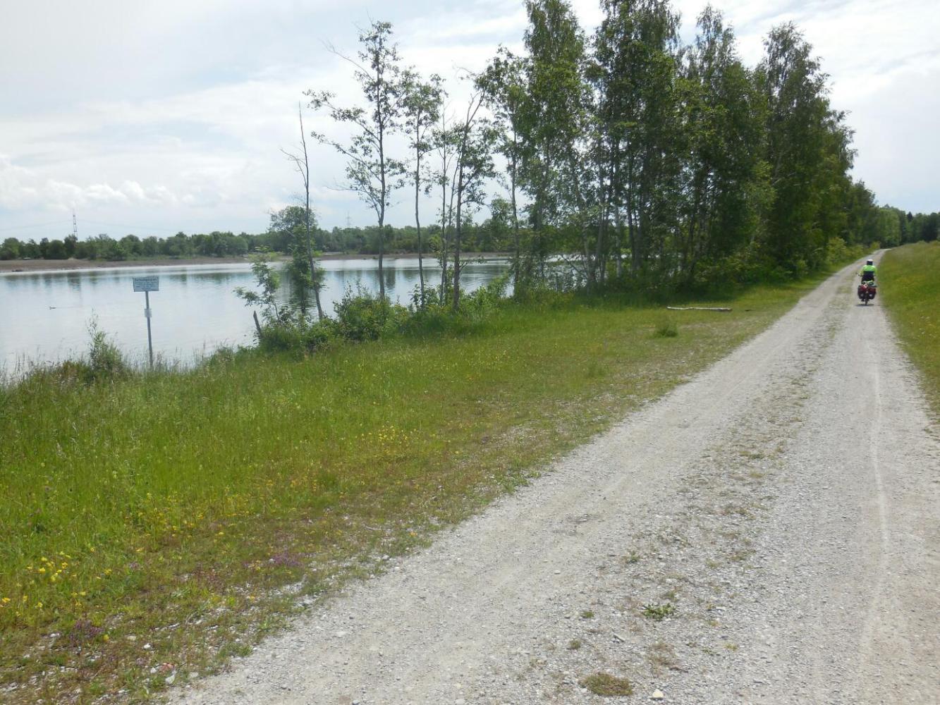 The remaining ride for the day was one form or another of following the Lech river south. A lot of this was in forest, which forms the watershed for Augsburg drinking water. The forest is interlaced with paths, and it is easy to get turned around. Merv said his planned temporary farewell, and headed off. We continued slowly, puttering through the forest. An hour later, Merv came up to us, from behind! We assumed that he had gone around the world and was now lapping us, or something. A bit more consultation on the way ahead, and we waved Merv off again. Fortunately (for him) we did not see him again during the day.
