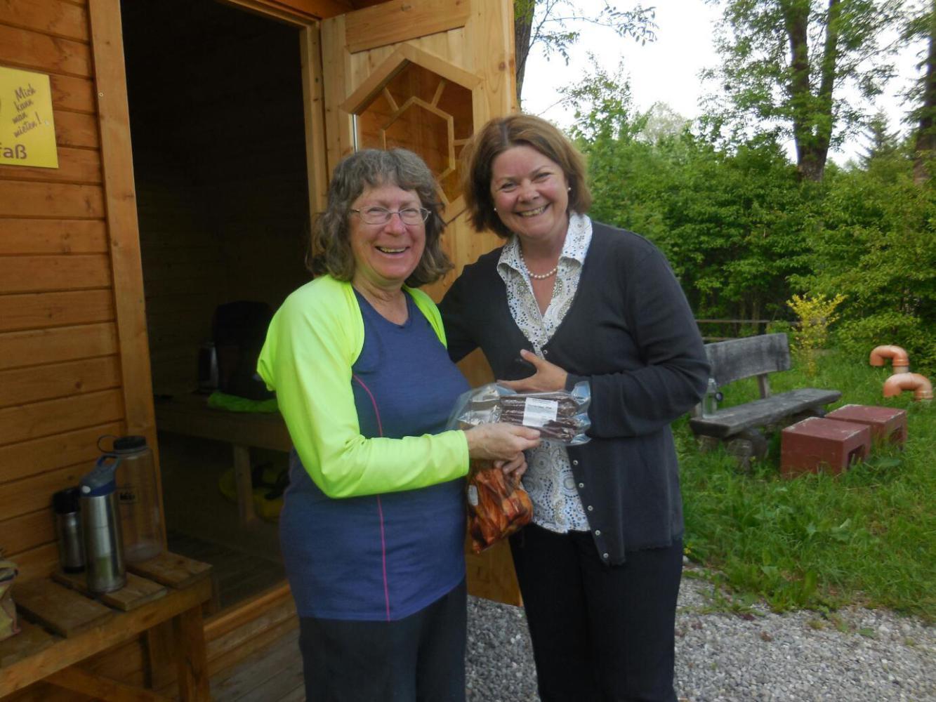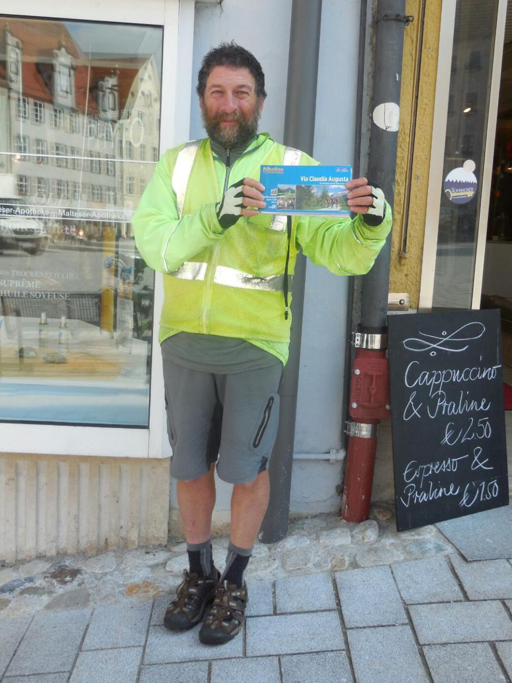 By the time we had made our decision, we saw that the tourist information in the rathaus was now open. Dodie went in, and came back with... the paper Bikeline book of the Via Claudia Augusta! So guess what folks, that's one more "Book" that has become part of this tour. The book, by the way, covers 800 km of bikeway, all the way from the Donau to Northern Italy. We are already hatching a plan to cycle the whole darn thing, plus any other Roman routes, next year. We might call it the Grampies' Roman Holiday.