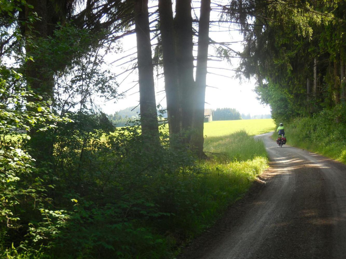 Now we crossed the Lech, with its interesting water chute just by the town's bridge, and using all our new mapping capability, headed off south. Dodie was quite handily able to avoid most of the nasty chevrons that mark hills in the route in a Bikeline book, and anyway, none of the hills were actually particularly vexacious.