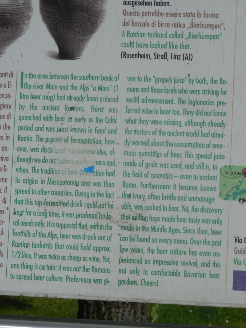 We sat on a bench to regroup. Last night our CGOAB friend Trica Graham, seeing how we were finding that the Via Claudia Augusta radweg was working for us better than the Romantische Strasse radweg, sent us some of the maps by email. We sat on the bench and scrutinized the emailed maps, trying to decide if the Via would be best for us to keep following (more direct? fewer hills?) even if we had no paper maps or .gpx for it. We decided that yes, we would go for it.
