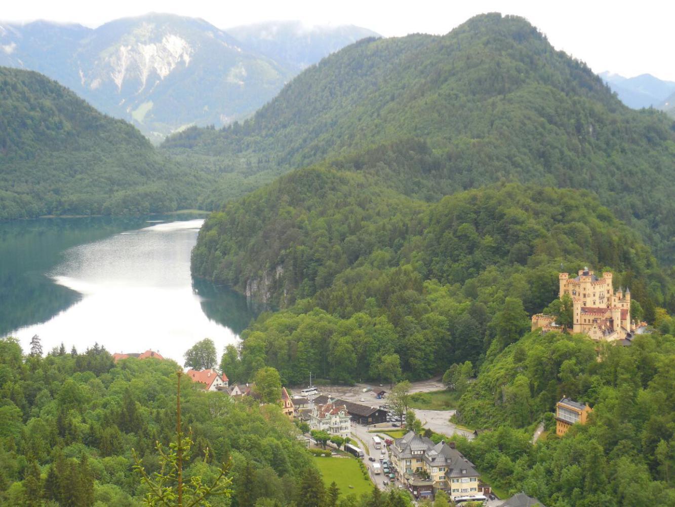 Really enthused by the castle itself and by the tour, we exited, of course, by way of the gift shop. We first told ourselves not to grab everything in sight, for the grandkids. Then we grabbed everything in sight. Later, as we walked back to Schwangau we encountered many more souvenir shops, and did our best to keep them in business as well!