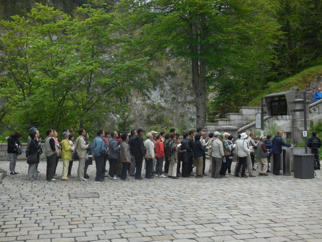 Rick Steves had warned of hoards of tourists, and recommended buying castle tickets online in advance. Indeed, there was evidence of the hoards in the fact that the castle has an entry system like that of Schonbrunn Castle in Vienna. There we had stood in a 1/2 km line just to buy a ticket to get in to another line. The way these systems work is that when you do somehow get your ticket, it specifies admission at a certain future time. A scanner on a turnstyle will not let you in until your time has come. And, if you are late, you also are not going through.