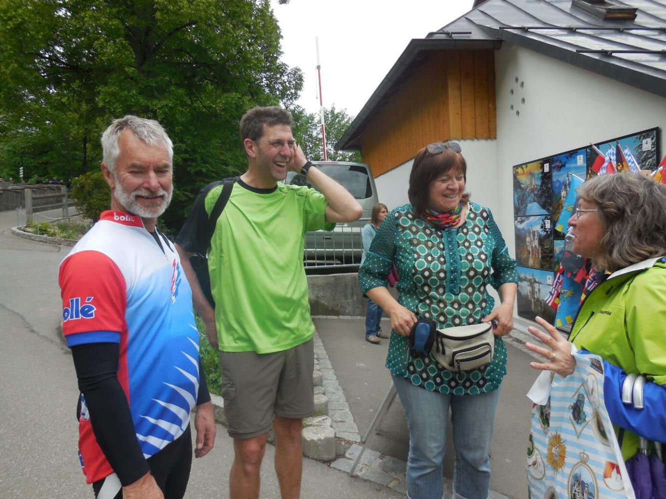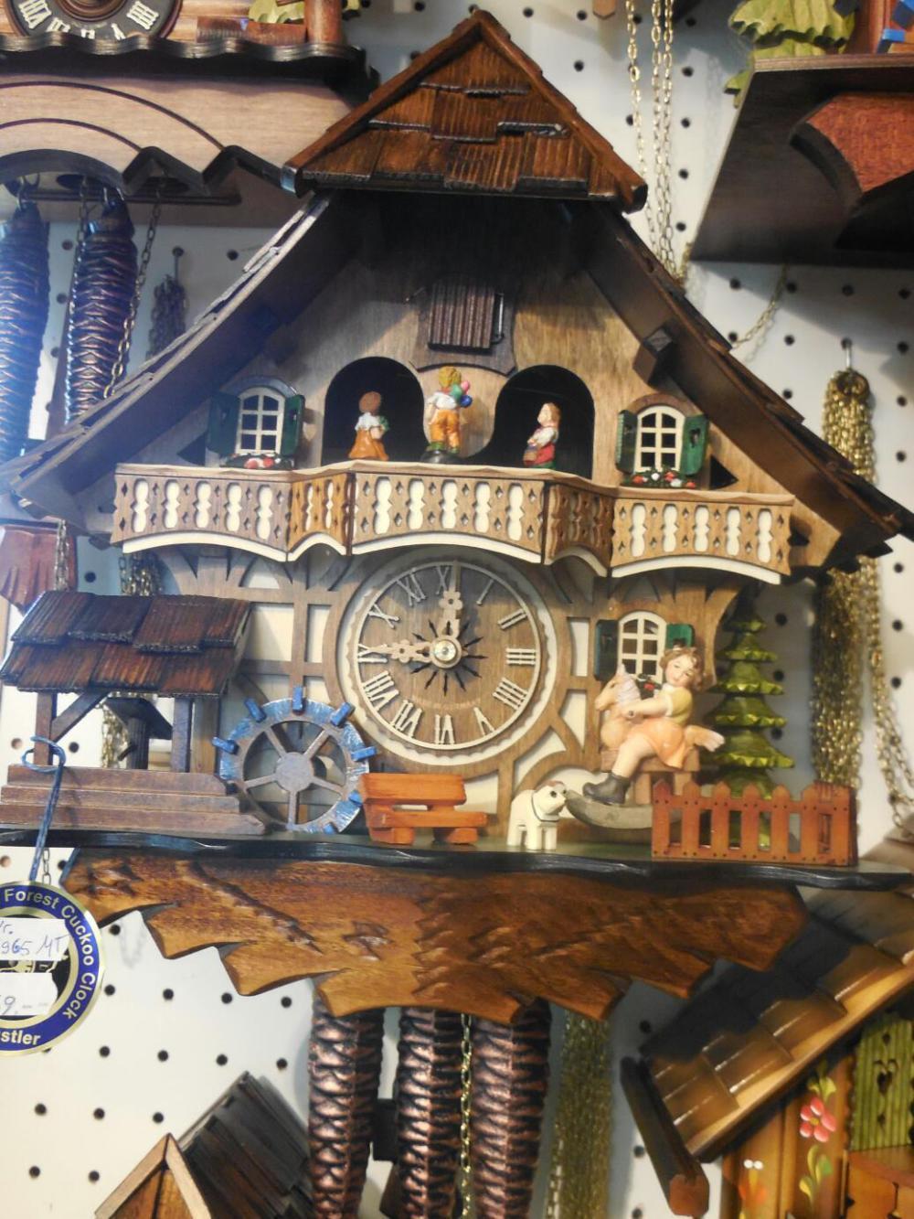 We stopped at the post office on our way home to find boxes for mailing our loot (sure could not carry it far by bike!). This time the sweet older postal worker behind the counter was extremely helpful. The boxes we got turned out to be a little big, so we went out to see if we could find some more junk to put in. Fortunately for our wallet, most stores were closed! We did stop in one that had cuckoo clocks. Yes, yes, we have agreed no serious cuckoo clock looking until the Black Forest. Up by the castle they had cuckoo clocks too. All had some sort of Black forest label and "Made in Germany" on the face, but I am still wondering about false copies. In this store in Fussen they had one quite fancy one, with one week movement and turning water wheel, "only" 349 euros. I thought I had cuckoo clocks figured, and 349 was too cheap for these features. Was this a clone? No, said the clerk, it was a variant I was not aware of - moving parts but no music. Now I am confused again about features, authenticity, and price. Ok, I still have a month or more to figure it out.