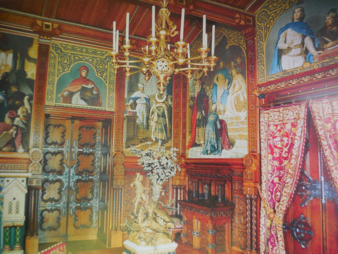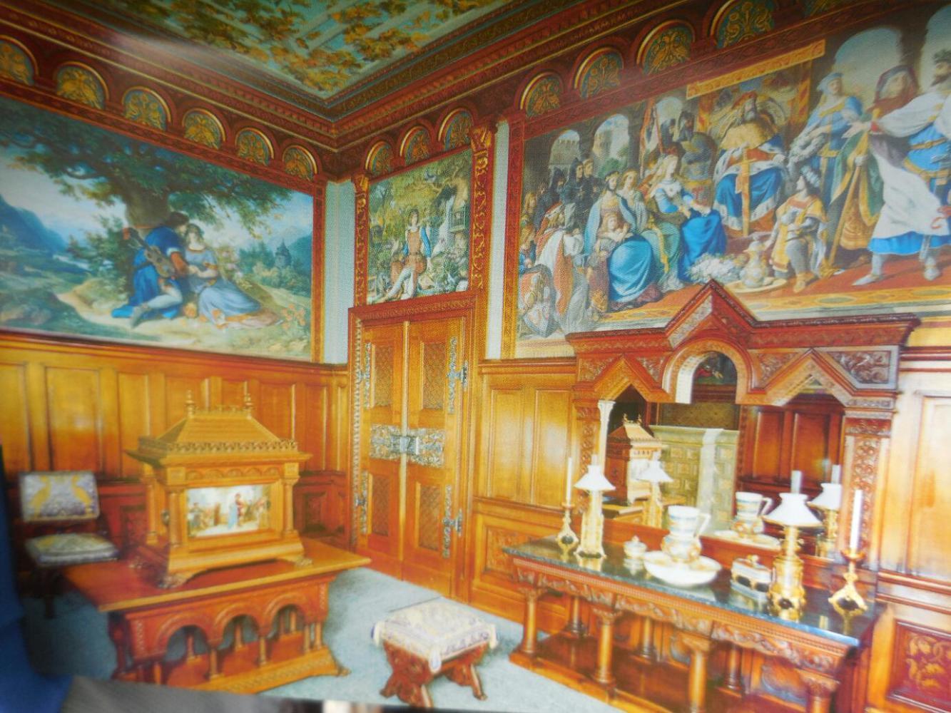 It is significant then, that the initial designs were done not by an architect but by a set designer. In fact a major room in the castle is a "Singer's Hall", and this has stage scenery by a Munich theatre painter.