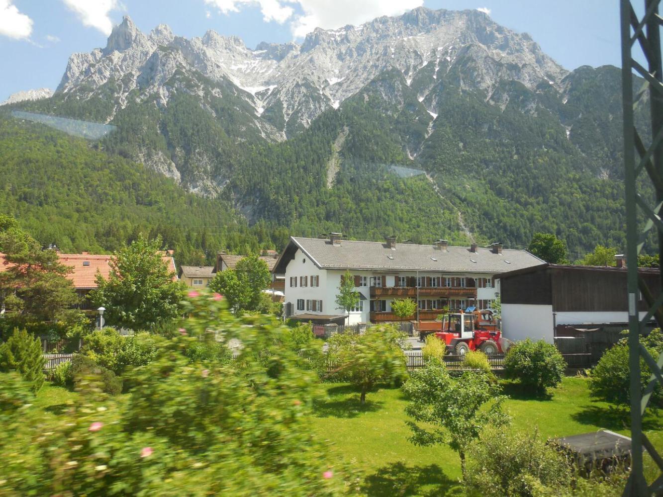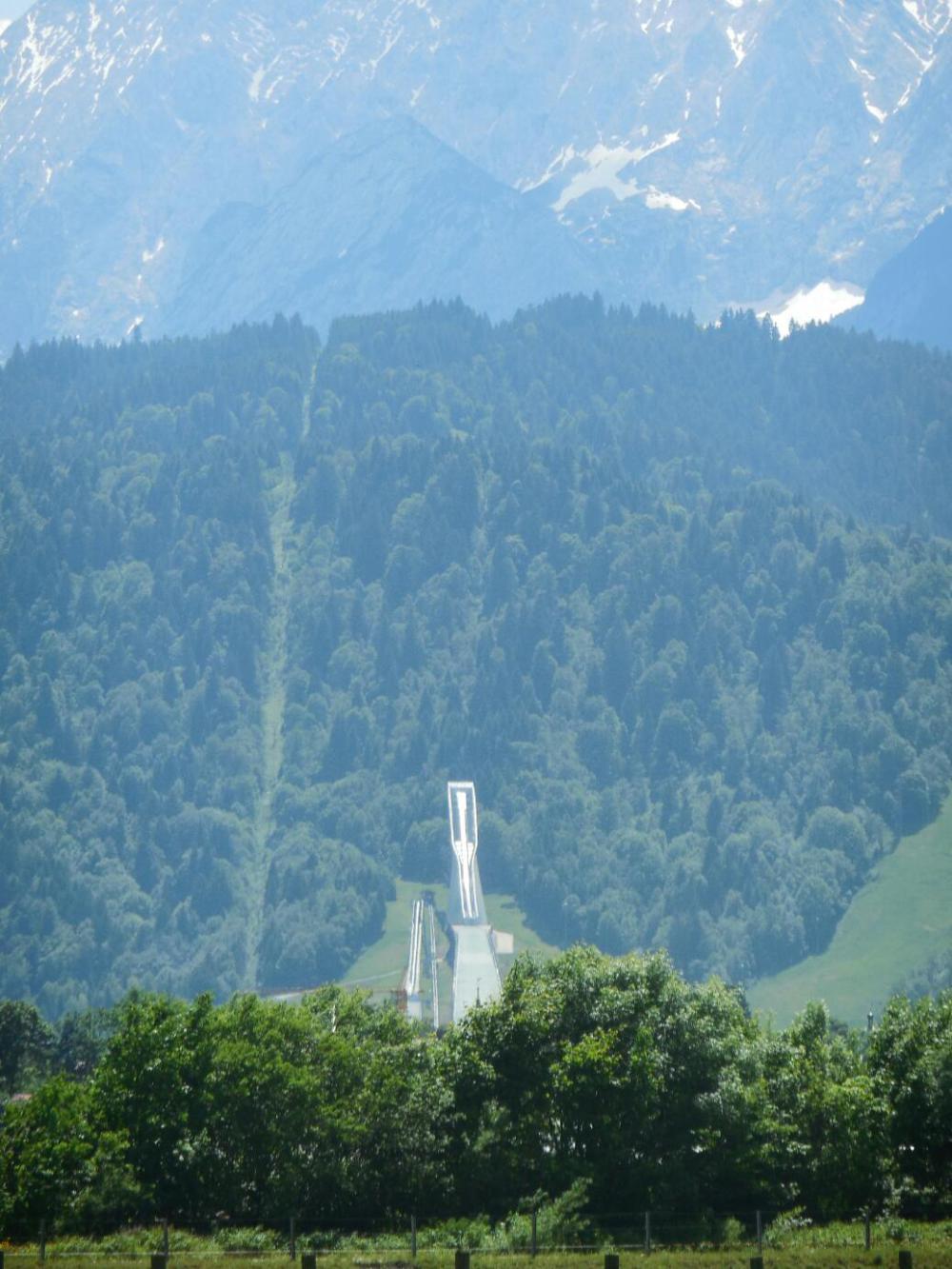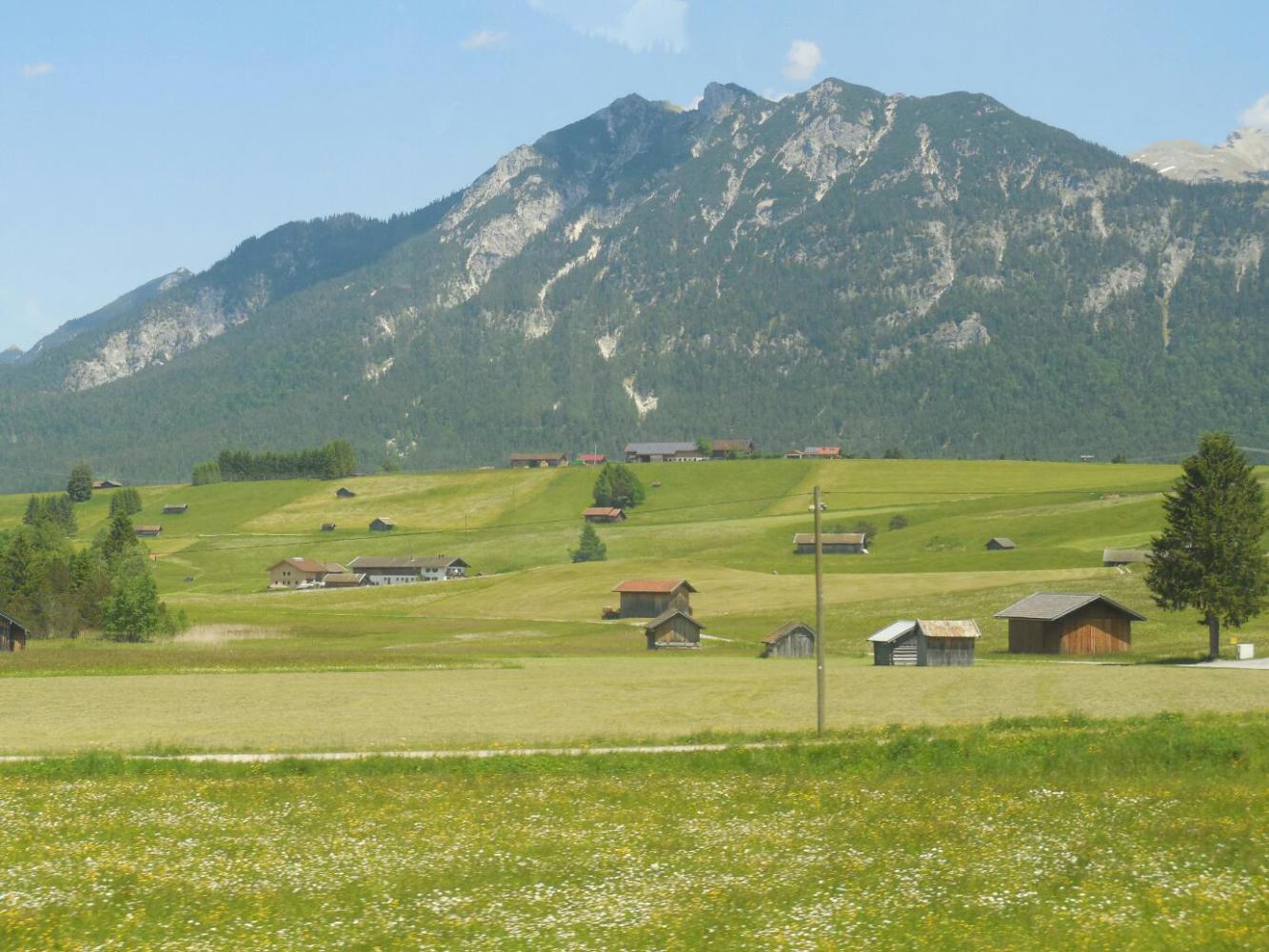 At the bottom the views opened up to an entirely new range of mountains. These were taller than the ones we had been seeing, and with a lot of snow on them. In fact, it was the range that includes the Zugspitz - Germany's tallest. At first it was not clear which of the peaks it was, but then Dodie spotted the cable going up the side.