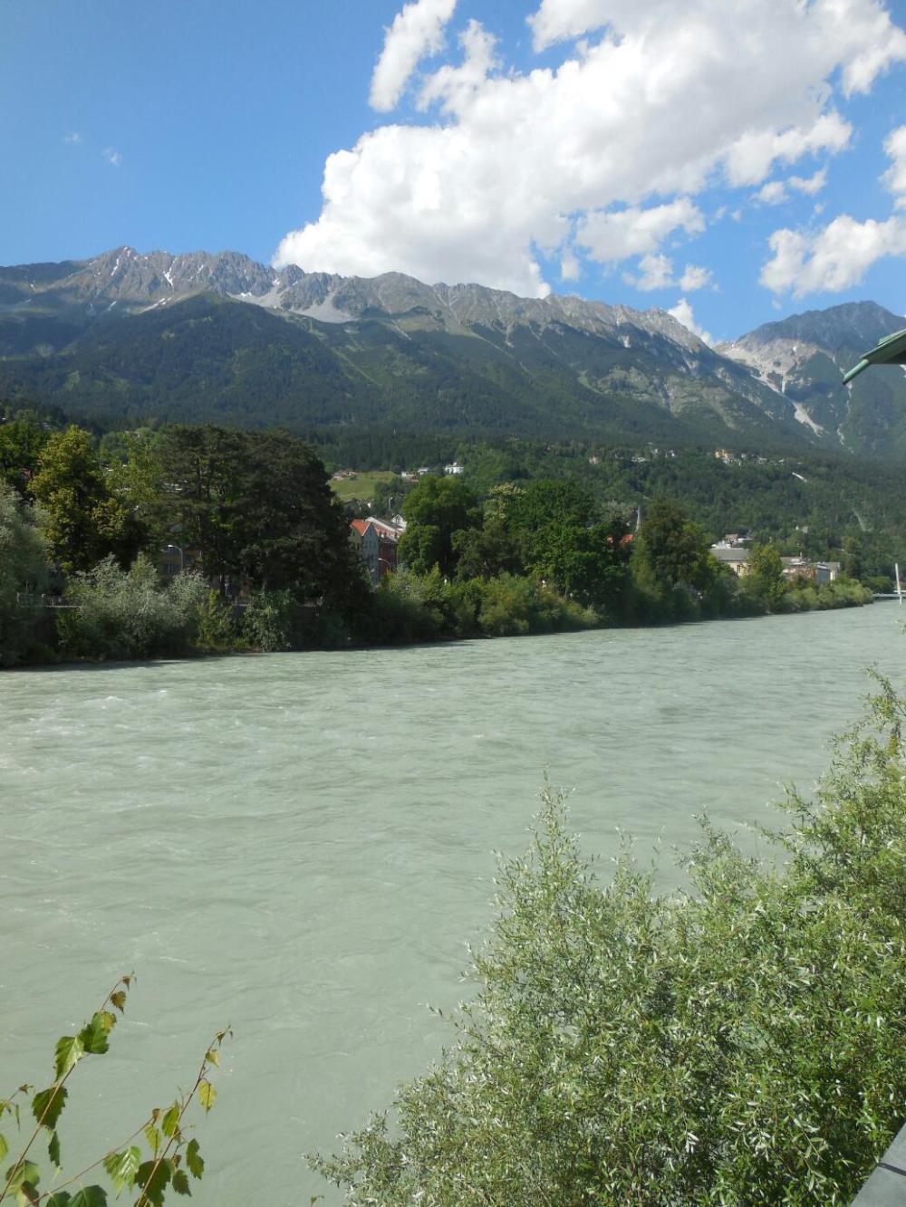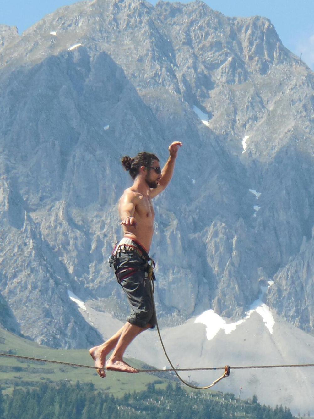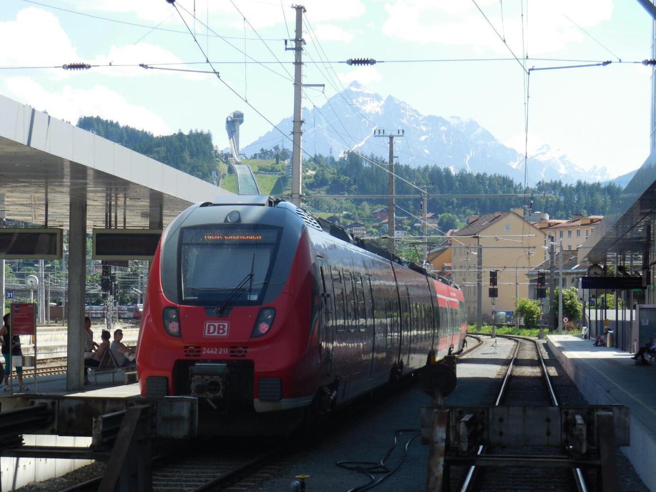 At the bottom the views opened up to an entirely new range of mountains. These were taller than the ones we had been seeing, and with a lot of snow on them. In fact, it was the range that includes the Zugspitz - Germany's tallest. At first it was not clear which of the peaks it was, but then Dodie spotted the cable going up the side.