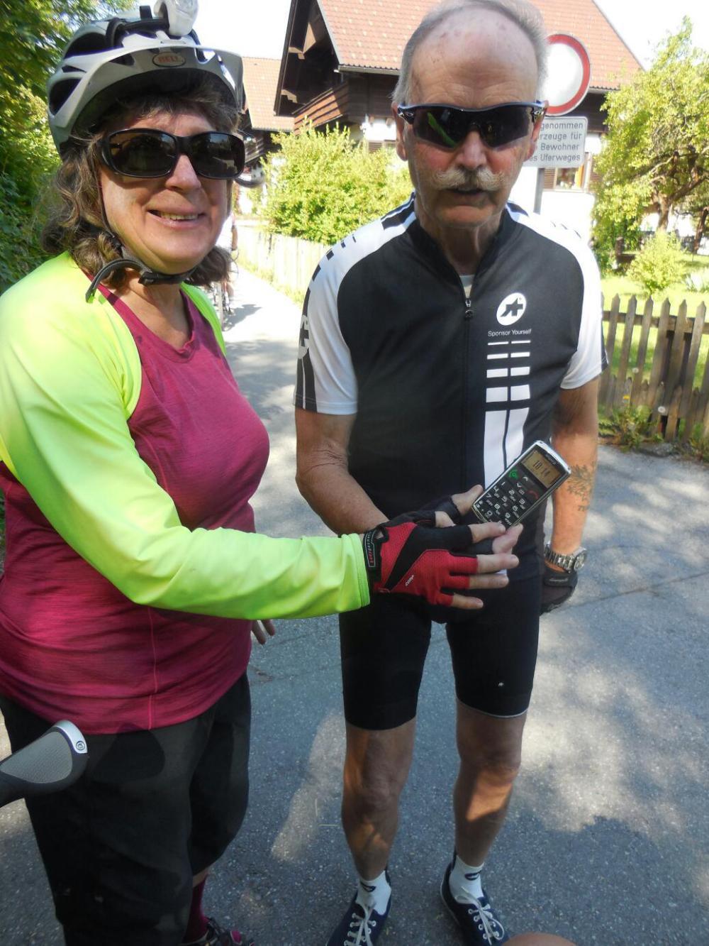 Our next guide was Ernie. 79 years old, he had lived in Calgary. He used to spend a lot of time driving to Lake Louise for skiing. Back in the Tirol, skiing is much closer. This guide also had fancy gear - all Italian, with a Colnago bike and Campagnolo gloves. He did not have internet to look at the blog, though. Claimed to be too poor.