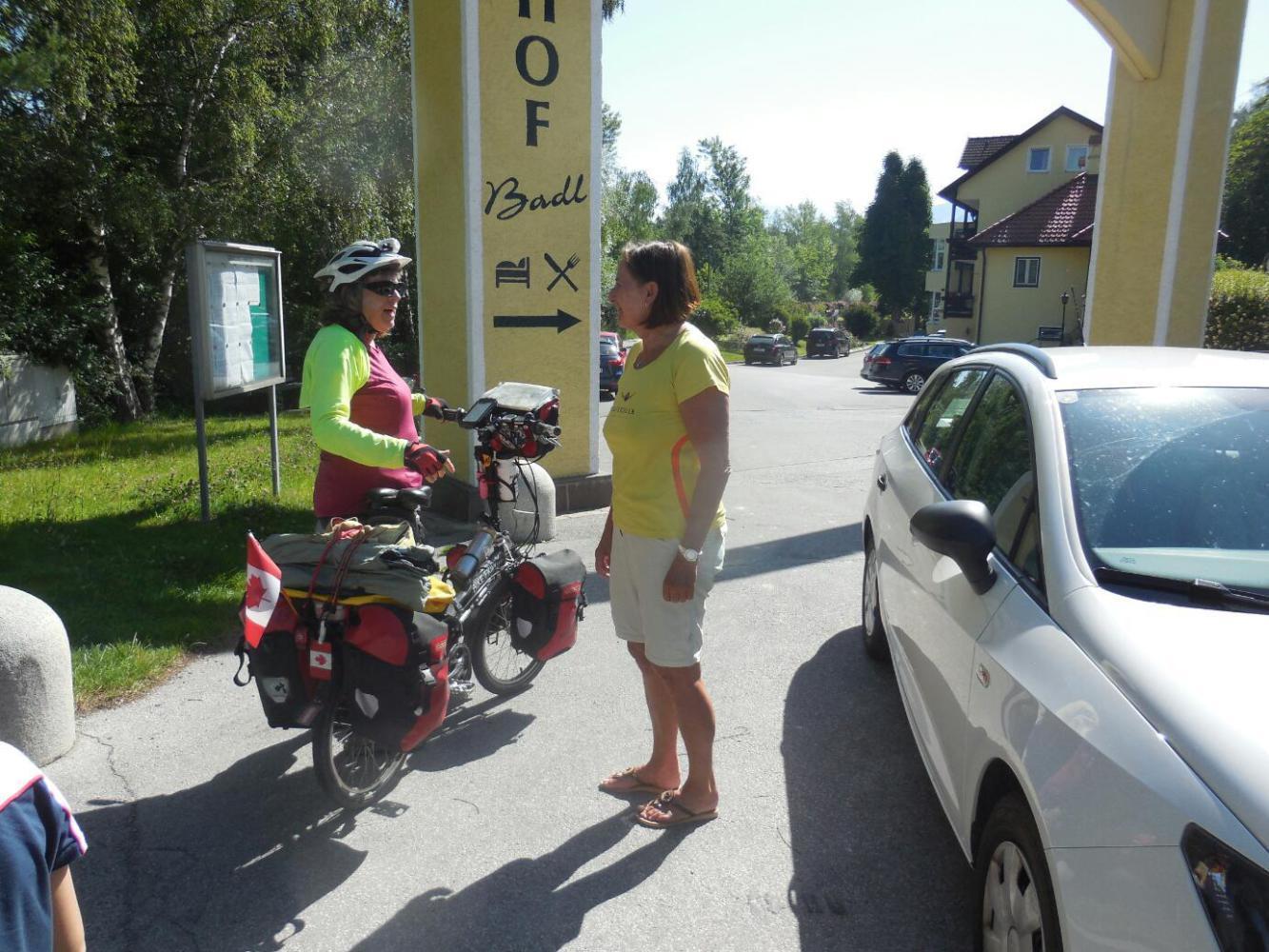 The remainder of our day was filled with cycling among tall peaks on all sides, with meadows and houses reaching far up the flanks. There were iconic churches, whose onion shaped domes look so magical against a mountain background, and there were zillions of other cyclists on the paths.