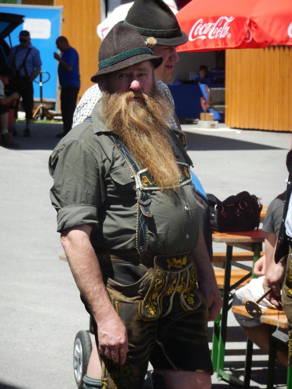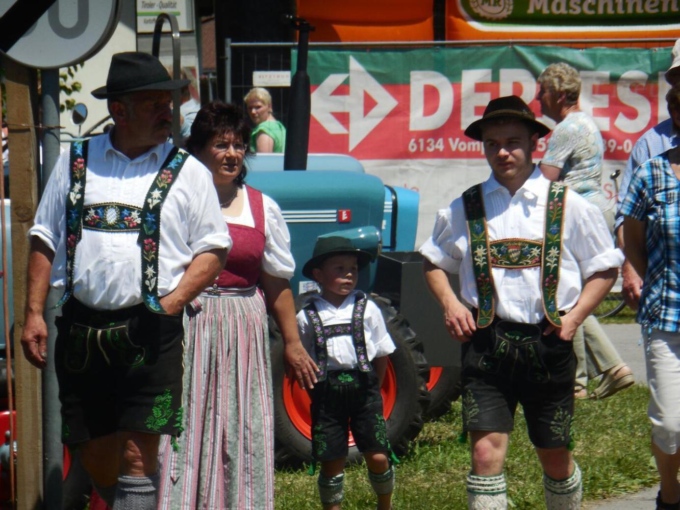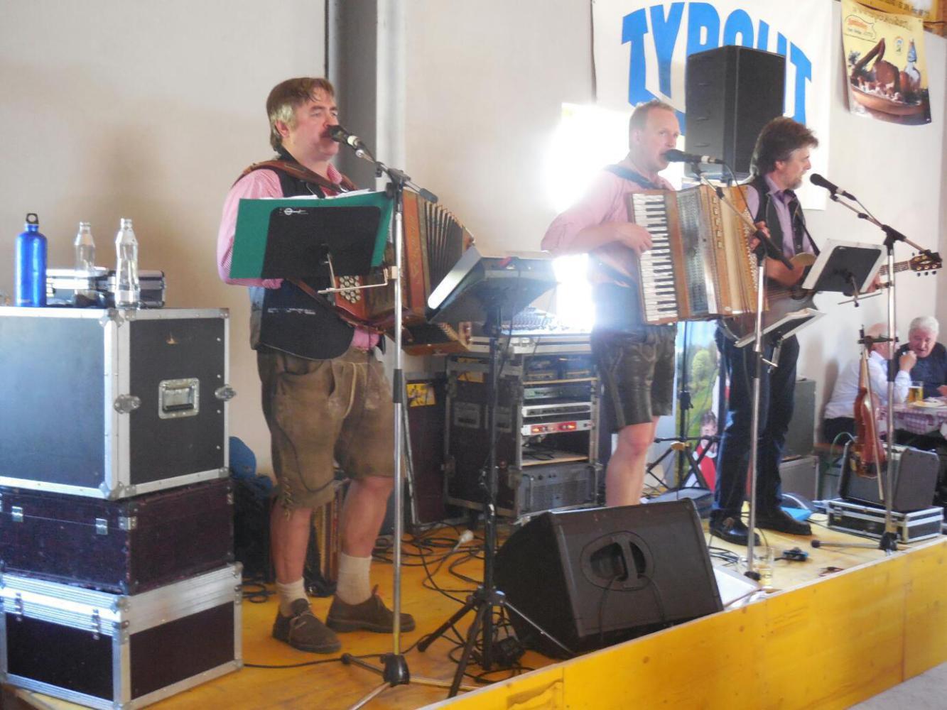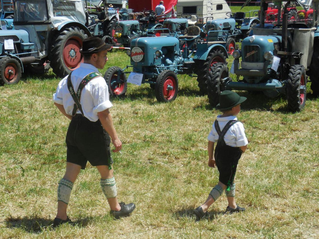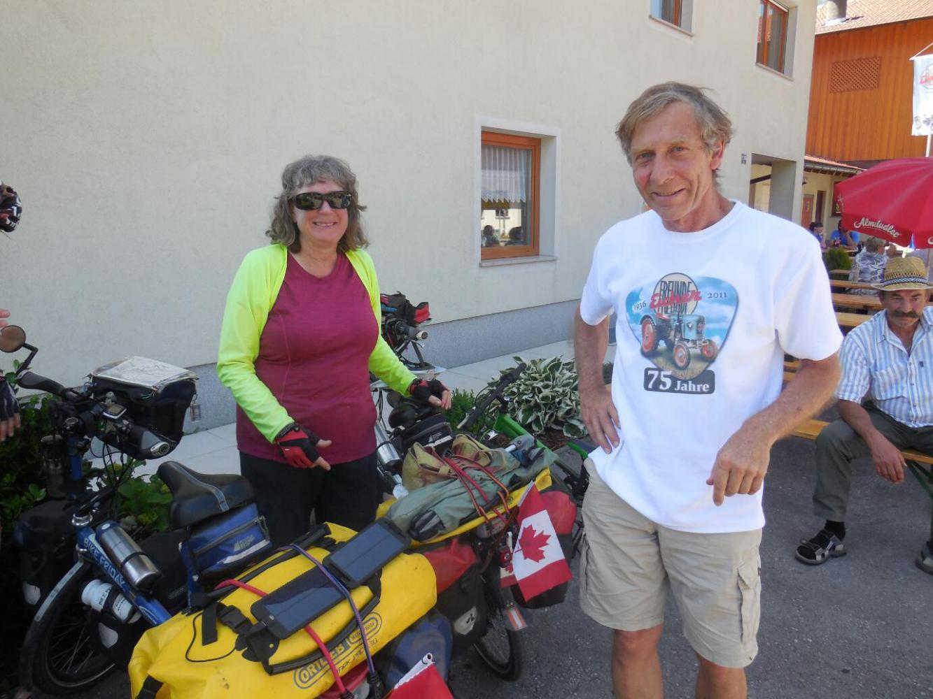 A wuit different experience was waiting for us down the road,as we ran in to what at first looked like a market, but what turned out to be a giant meeting of the Eicher tractor fan club. So we began by just trying to get a shot of what looked like a few tractors - for Ken Graham - and we ended by joining in to the party. The party included an oompah band, food, and tables to sit at. While we were eating our kuchen, Elke and Michael came over - fellow cyclists, they were joining in too. They live in Frankfurt,but were cycling from Innsbruck to up in the Ziller river valley. We hit it off,in part, because they were pulling a Bob trailer.