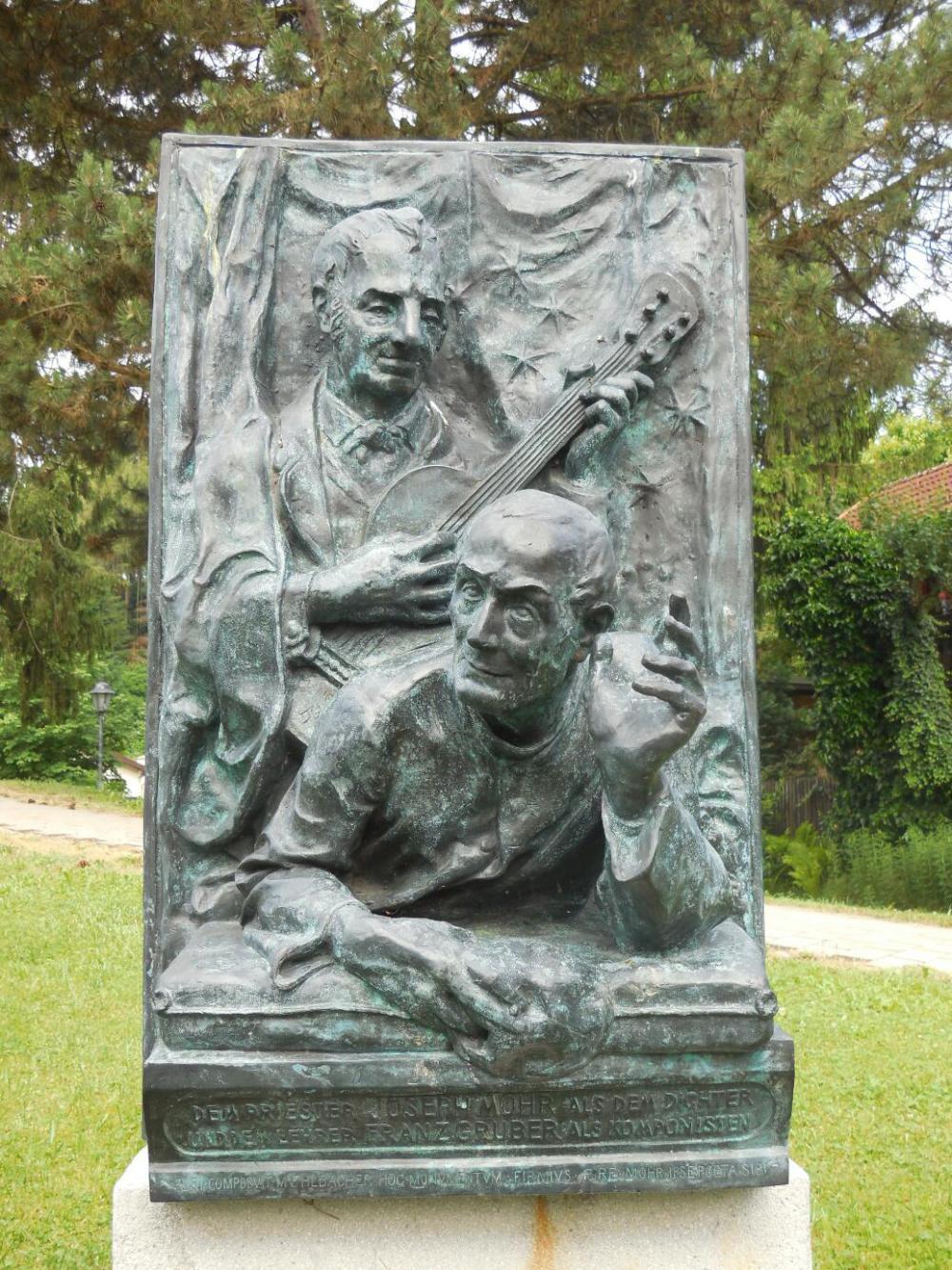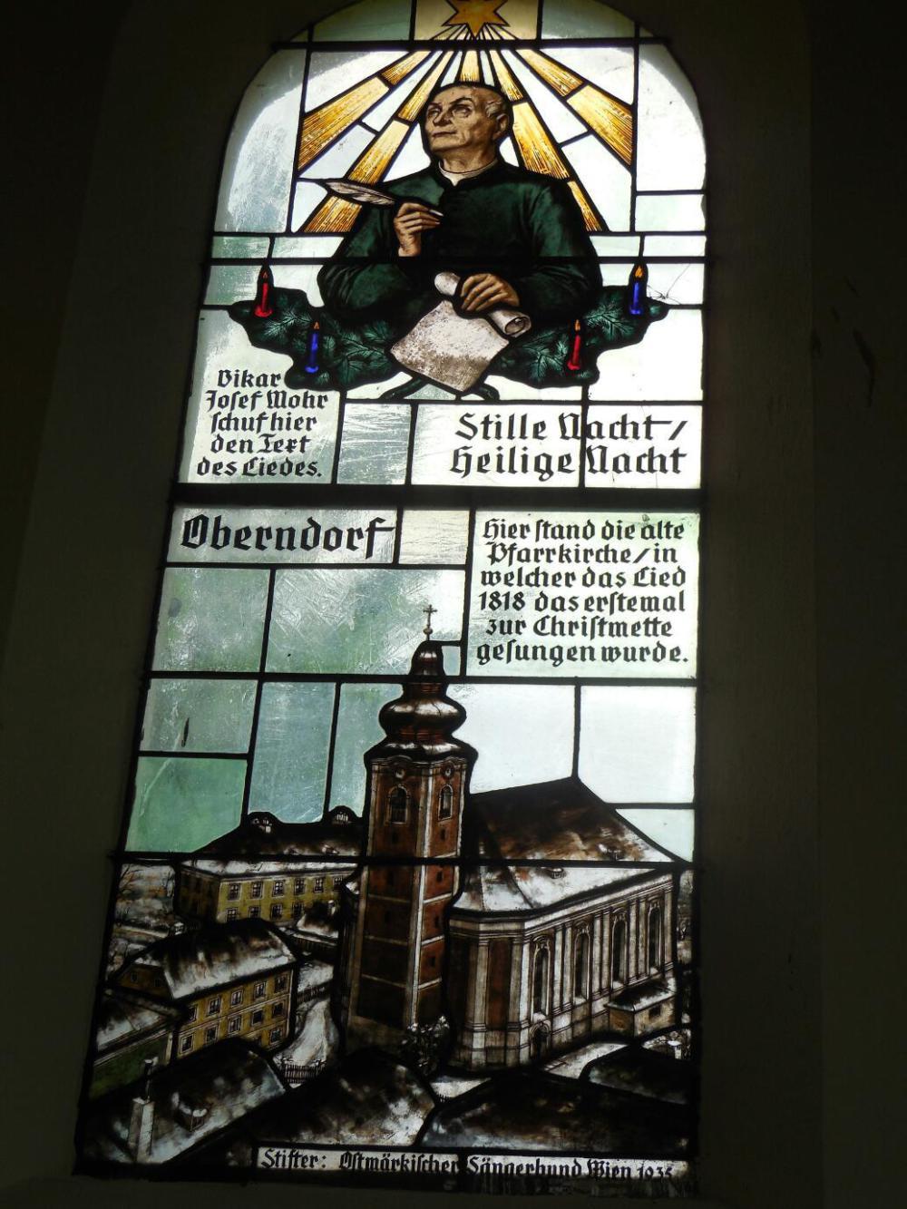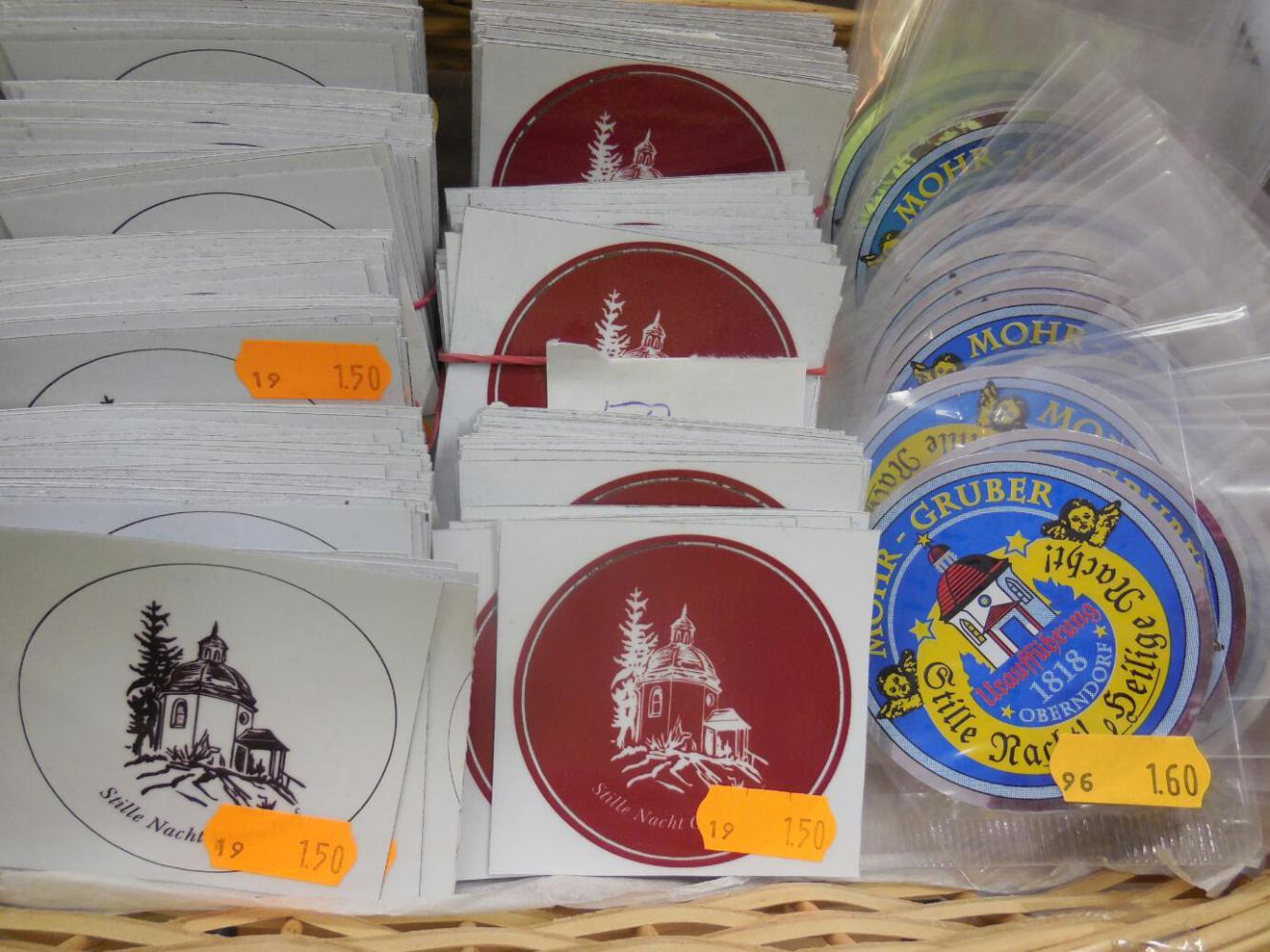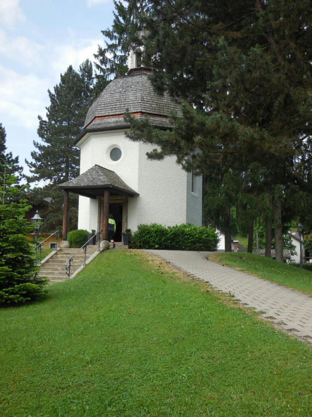 Oberndorf the first time had been like this: Someone had told us that the place where Silent Night was written and first performed was in a village in Austria, called Oberndorf. We looked it up in Google maps - careful! there are zillions of Oberndorfs floating around. Then we cycled to and found the place (not to mention our other big goal: Fucking, Austria). Both, actually, were magical. At Oberndorf there is a chapel, built on the site of the former church, where the carol was performed. There is a gift shop, with books and CDs, and history. It was just all so darn swell! There was also a cafe, with tables set up between the shop and the chapel. There we got our first "grill teller". At time we had no idea what "teller" (plate) actually meant, but it came with herbed butter on the grilled meats. Wow!