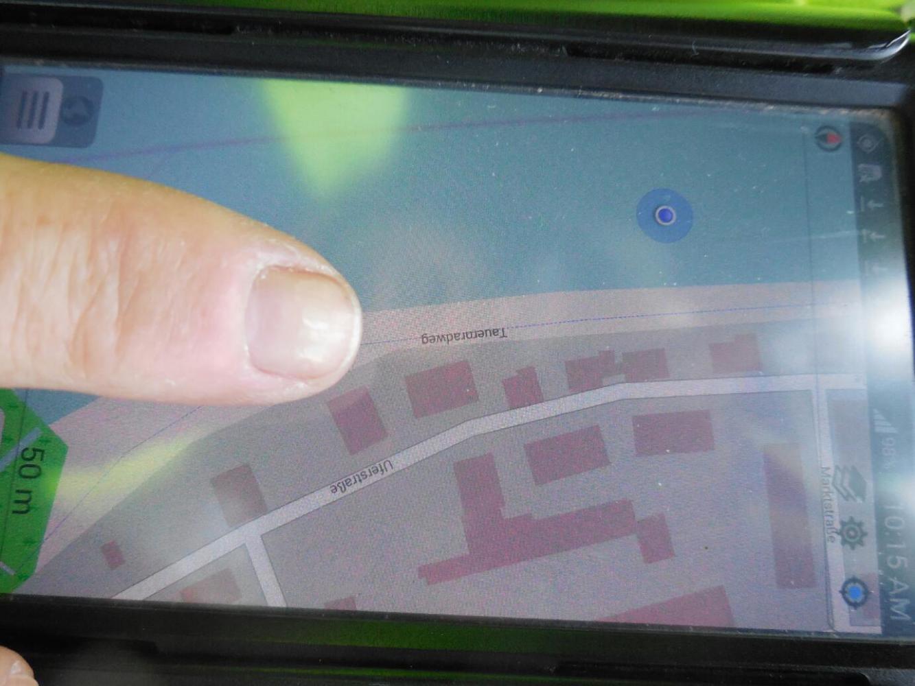 Dodie points out that the GPS says the path is there,and darn it,we will find it. Note that the GPS also thinks we are presently located in the middle of the river!