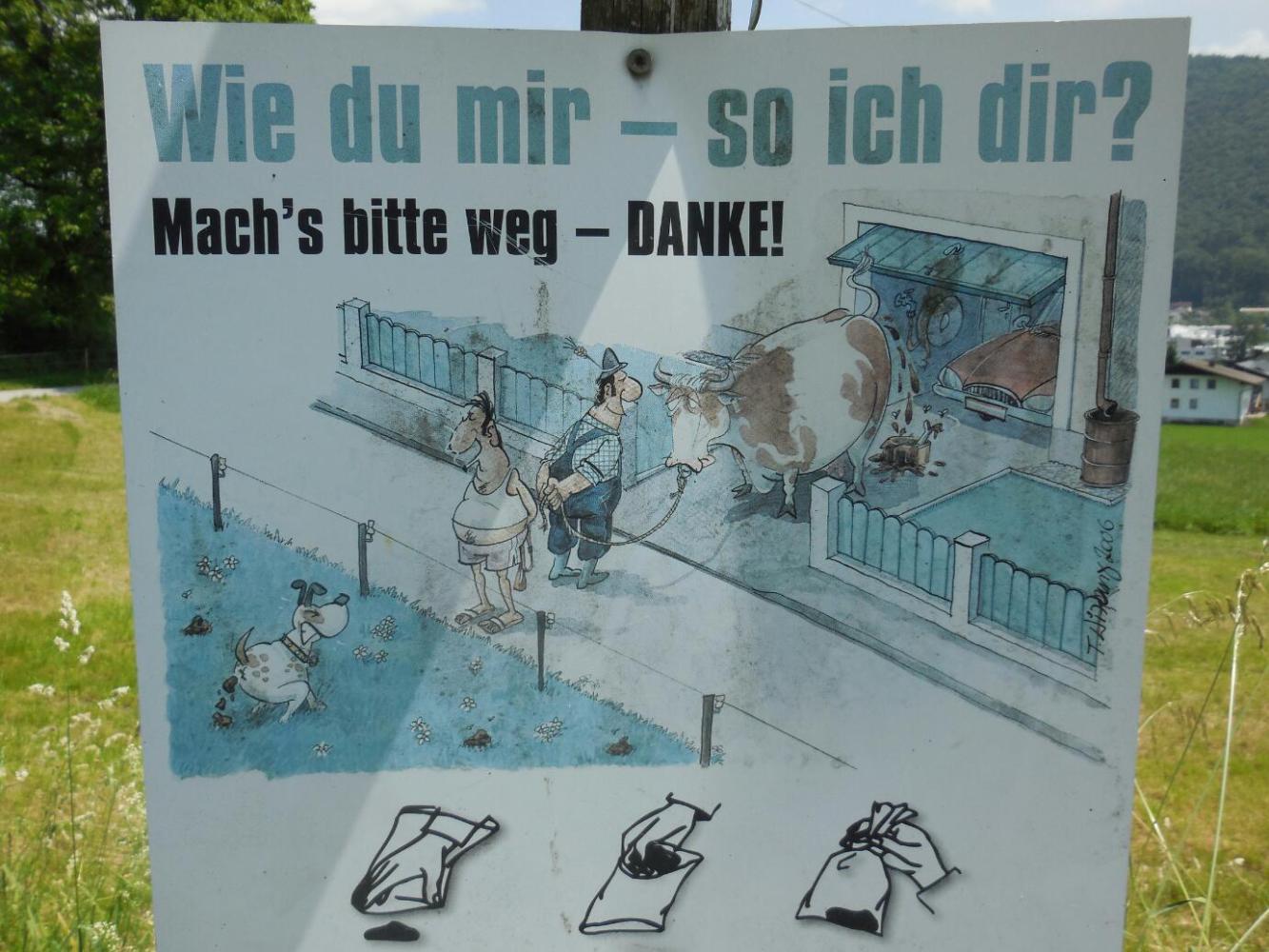 We photographed this sign last time we were here. It is along the path, beside the little stream, that leads from the river to one of the campings near Salzburg. The first time we thought the wording was weird, now we know enough to consider it totally ordinary.