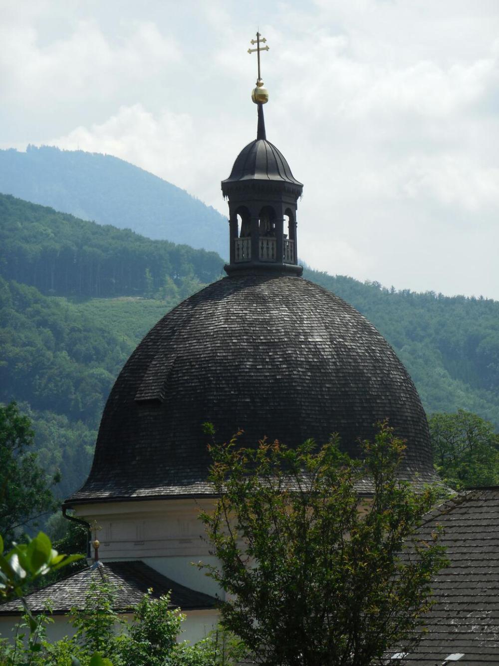 Also last time we were here - when looking for that unfortunately named town - we were impressed by the immense number of bike paths going everywhere, and the "Sound of Music" style meadows they were running through. We thought how great it would be to cycle on the Mozart Radweg, or the Tauern Radweg, wherever or whatever they were. Now we know what they are, and our plan was to take a spin around a part of the Mozart, north and east of Salzburg. So we went down the Salzach until we could just see the Kapuzinerkloster, high above the town. Then we turned east and headed out into the never never.