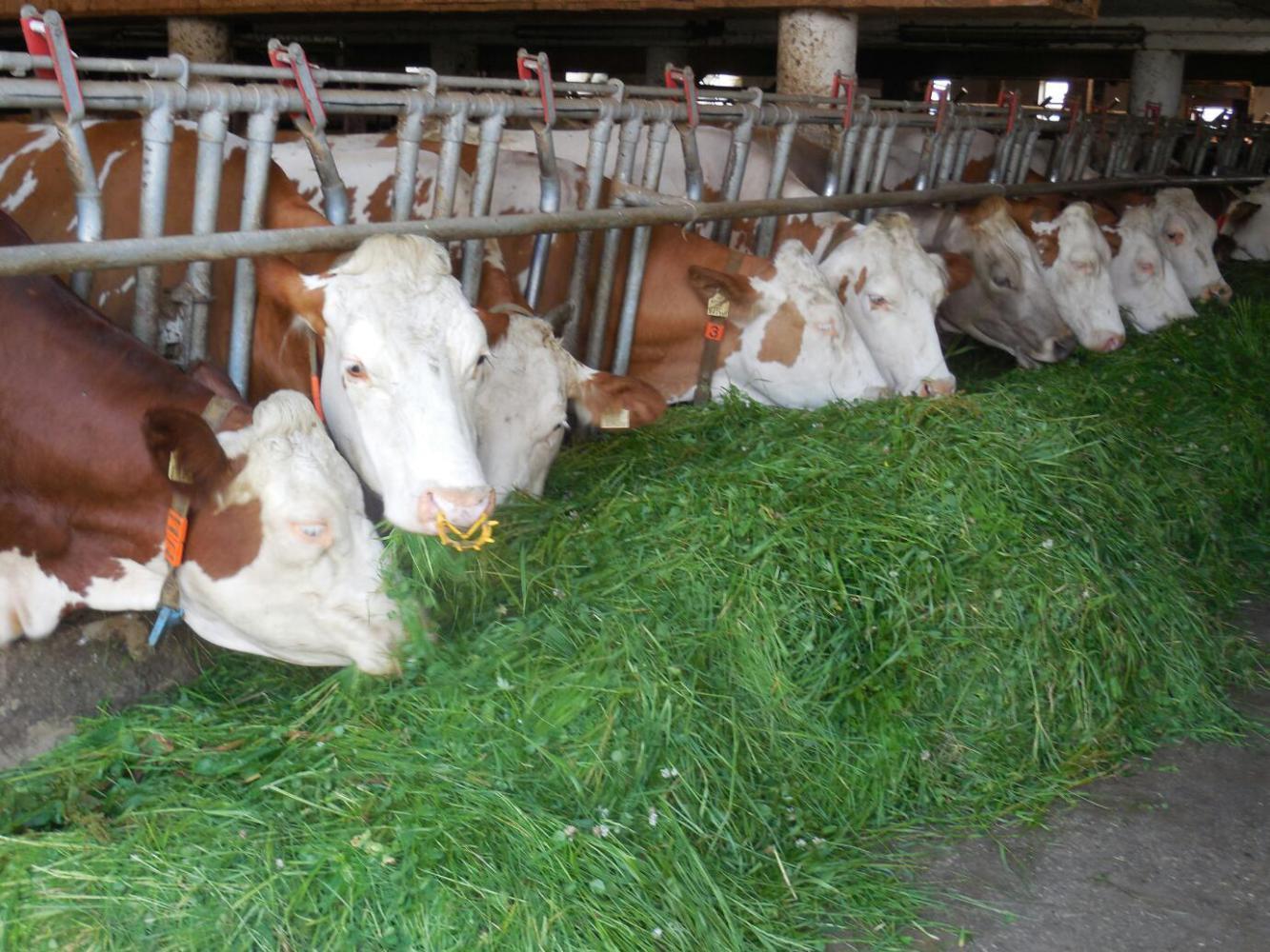 The never never was mainly a dedicated cycle path, and mainly uphill in the 40 degree heat (again!). Before long we came out into the meadows and mountains and chalet style houses we had been looking for. It was not perfect, though. For quite a while, the autobahn lurked in the near distance, There was also some light industry and not exactly chalet style houses. But overall, it was good. Being closer to Salzburg than last time, and going through lake country, we now encountered towns full of vacationers, and three and four star hotels. We even ran in to standard less attractive things like car dealerships and shopping centres. Still we could see mountains, big mountains, and the meadows we like so much. And cows! This region bills itself as the "milk paradise".