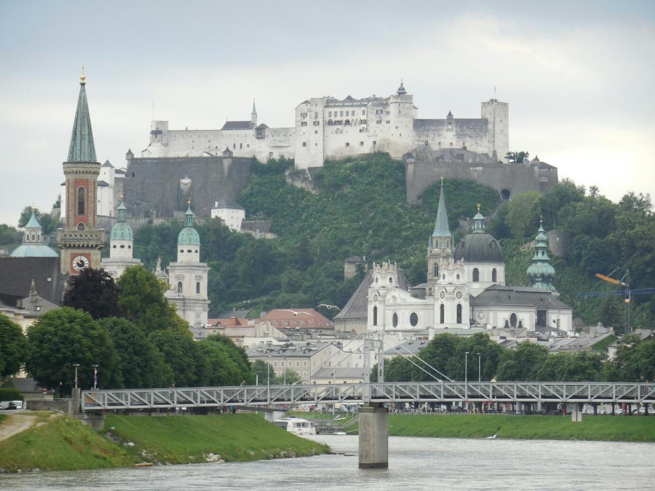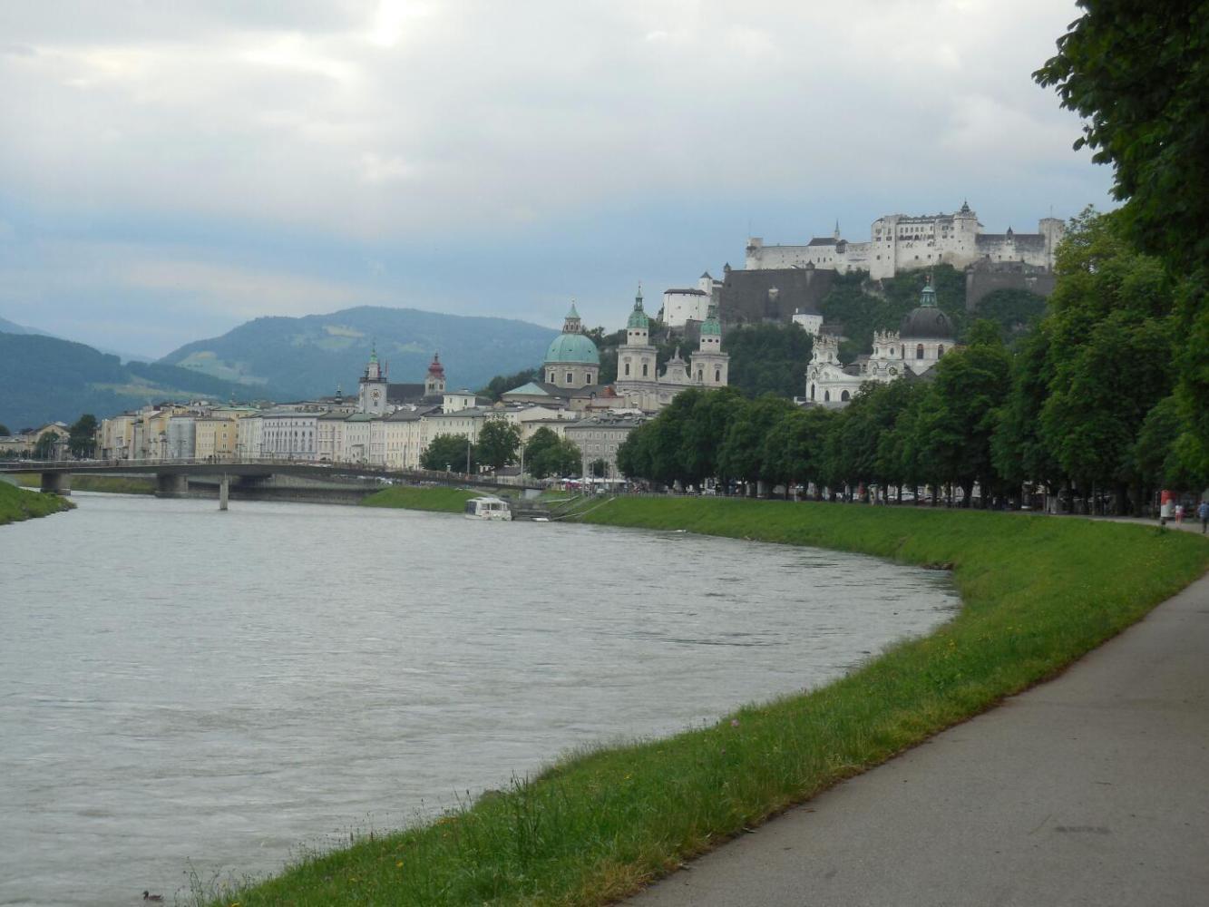 When we popped out of the forest we found ourselves right back on the path by the Salzach. Now we cycled the short stretch down to Salzburg, for maybe the sixth time in our lives. For this little bit, it was beginning to feel as comfortable as if we lived here. I looked at locals on the path, and tried to imagine really living here. What is it like to live in or near a really serious World Heritage site?