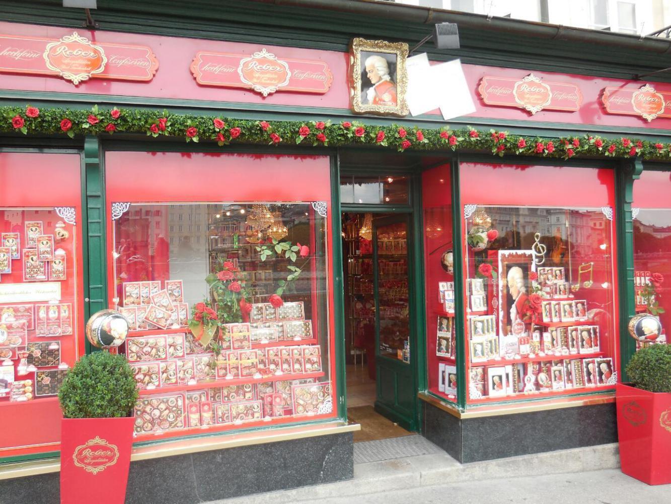 We debated which of the many bridges to cross (one is as good as another) and wound up at the gate to the city. Right beside the main way to Mozartplatz is the first thing I photographed two years ago - the shop selling nothing but Mozart branded chocolates. Hey, I'm not proud, I recorded it again!