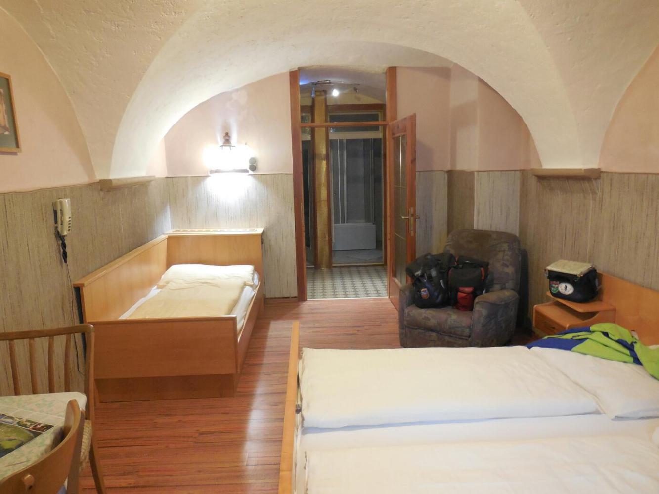 Ok, so we went into the town and found an old hotel on one of the main streets. 65 euros with breakfast. Our bikes are downstairs, in the hall. Our room is really neat. The ceiling is plastered, and incorporates about six domes. It's intriguing to think what the framing behind that is. We also have a spare bed and, one could say, four rooms - an entry room, toilet room, shower room, and main bedroom. It is just the kind of crazy thing we like.
