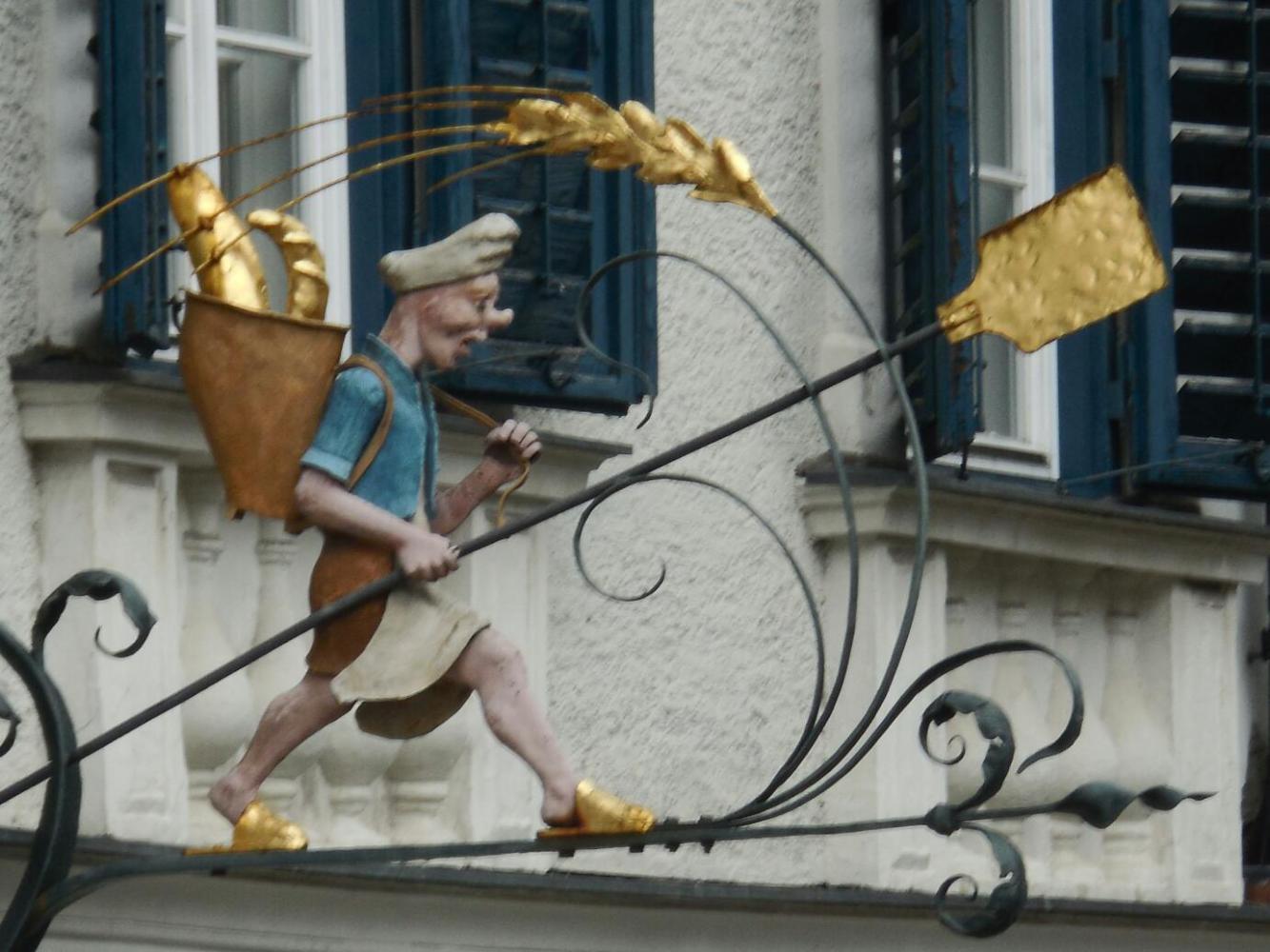We went out into the town, with the freedom of having lots of time. Hallein is not a dressed up place, but it does have unique and interesting buildings, and streets going off at all angles. We happened on a direction sign for the "Silent Night Museum". We had read that this was here, but found it puzzling, since Oberndorf is Silent Night central. We soon found the museum and the reason.