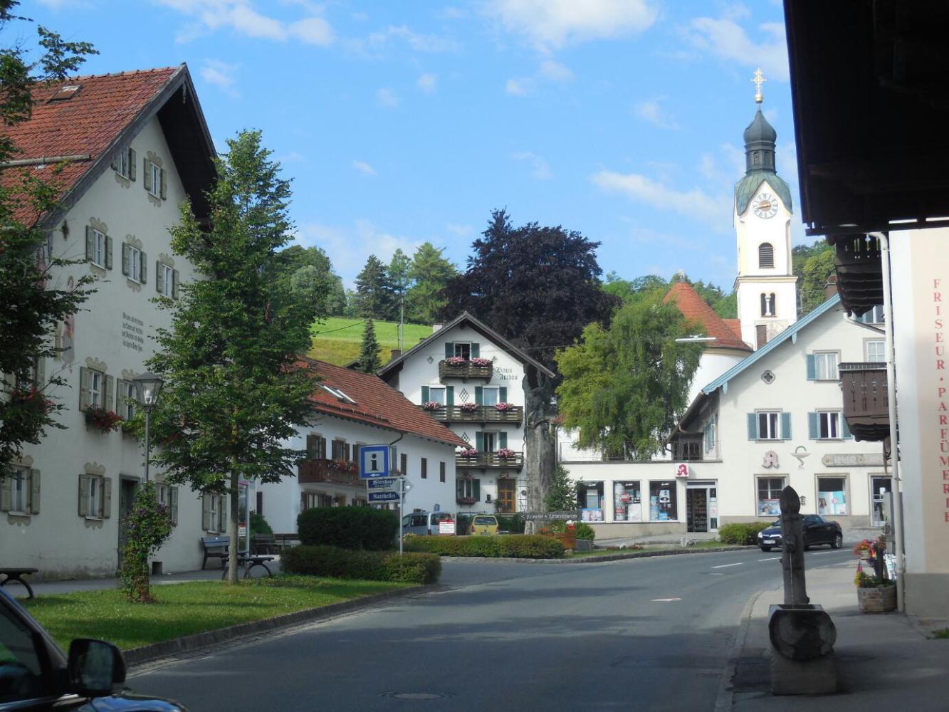 We found that we had stopped pretty much in the centre of Bad Kohlgrub, which turned out to be quite a small town. It was cute, though, and had both a small grocery and a bakery. The bakery was housed in a nicely decorated building, which I am sure enhanced the appeal of the qwark taschen we took away.