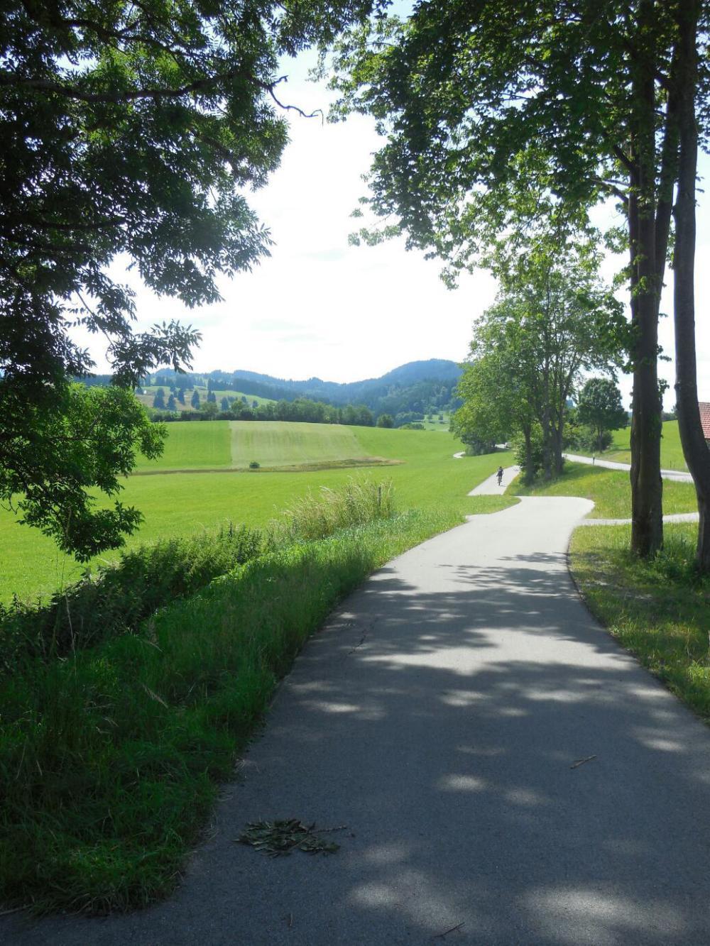 We realized that there was no way to avoid the twin problems of hills and gravel path - which is what the Bodensee-Konigssee had on offer to start us off - so we just went for it. At least there was no rain, so the gravel would not be working to grind down our rims, assuming we ever used the brakes!