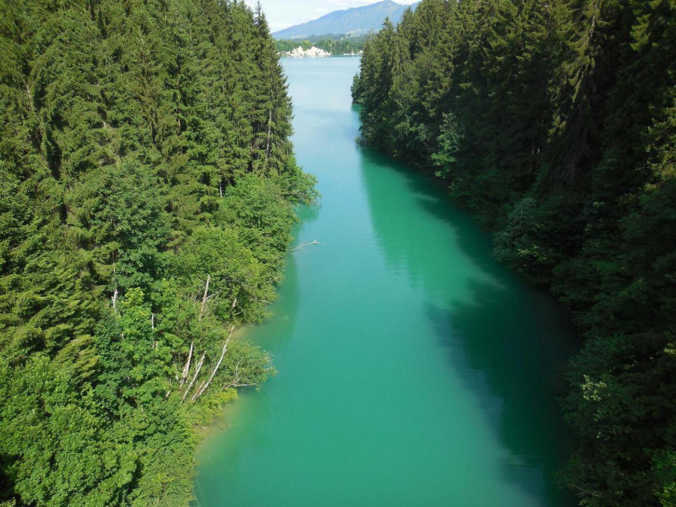 We paused to look up what we ourselves had said about this bit of the route when we came the other way, and found that we were not very enthused about it then either. However, it was only about 10-15km of slogging - not the end of the world. Soon enough we collected our reward. We burst out of the forest and off the mountain, into the valley of the Forgensee. This was the start of 30 km of the best, most scenic cycling anywhere.