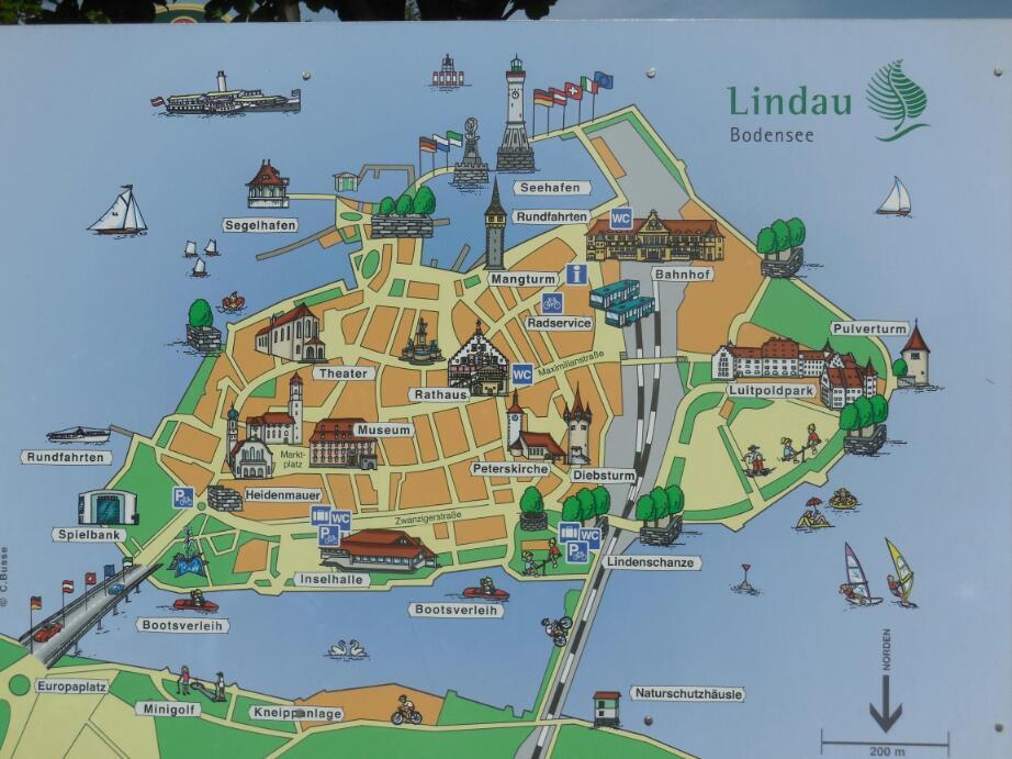 Lindau, like every town, has a list of things to see. There seems to always be about 18. Maybe that is the official assessment of how much a tourist can absorb. Lindau lists 18, but depending on your interests, some have greater drawing power than others. We like rathauses, market squares, pedestrian streets, and baroque churches best, but we still did the rounds and so had a look also at some towers and walls and lanes. We gave a miss, though, to the Bavarian Casino. In the U.S. however we will sometimes stop in at a casino, but only if they have free soft drinks or cheap burgers.