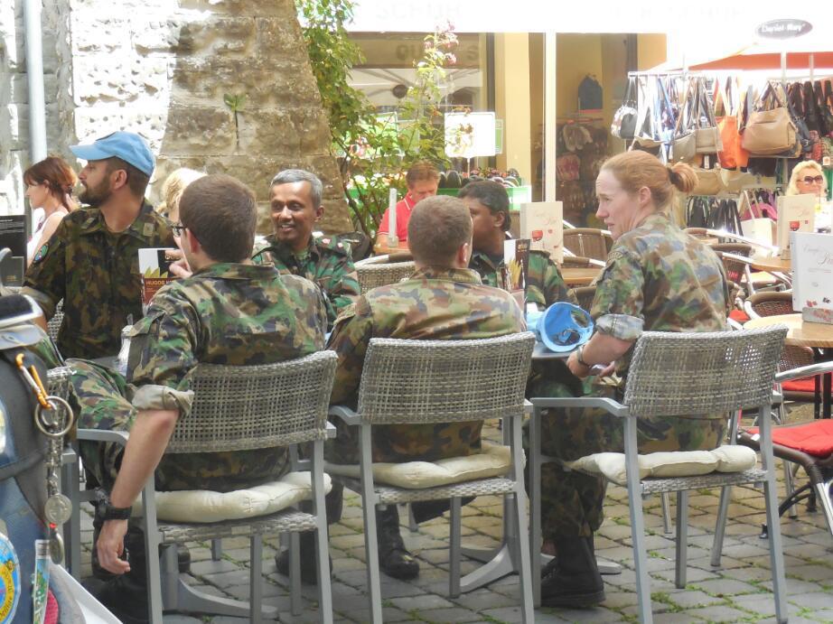 He really was a lawyer, but was doing his compulsory Swiss military service There were few if any Canadians in the group That Americans have a lot of trouble as peace keepers, since that is not their image